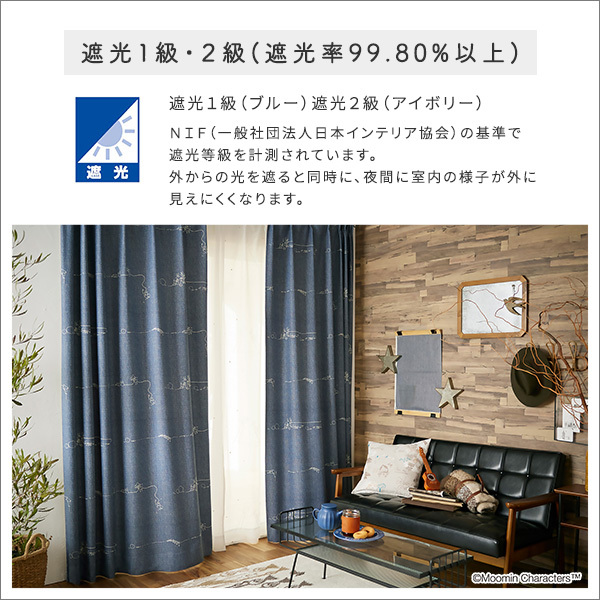 遮光2級カーテンなので、日中は日差しがお部屋に入ってくるのを遮り、夜はお部屋の明かりが外に漏れるのを防ぎます。