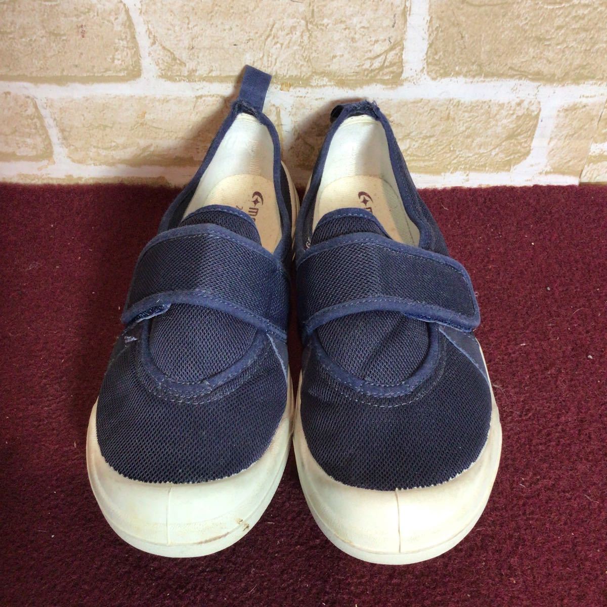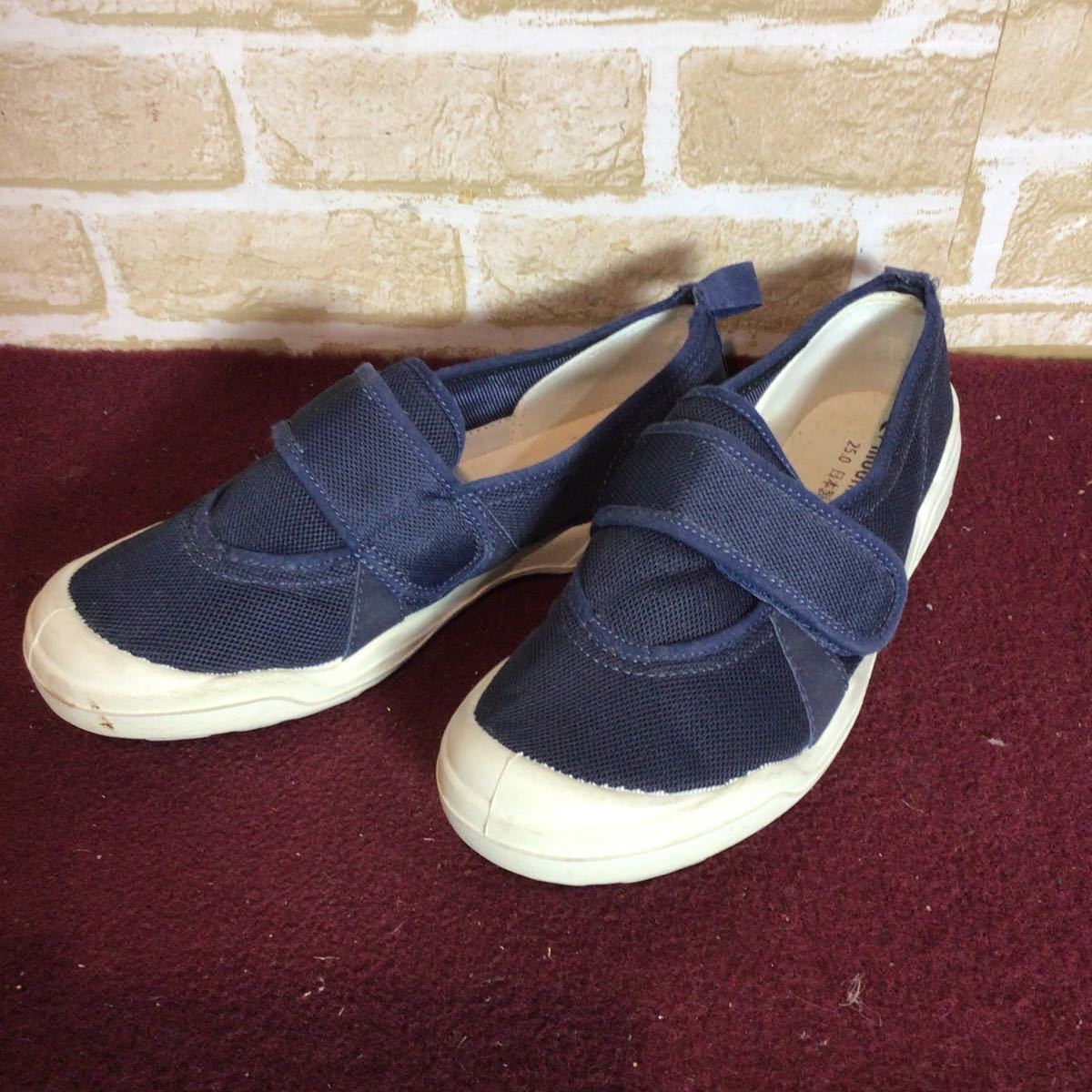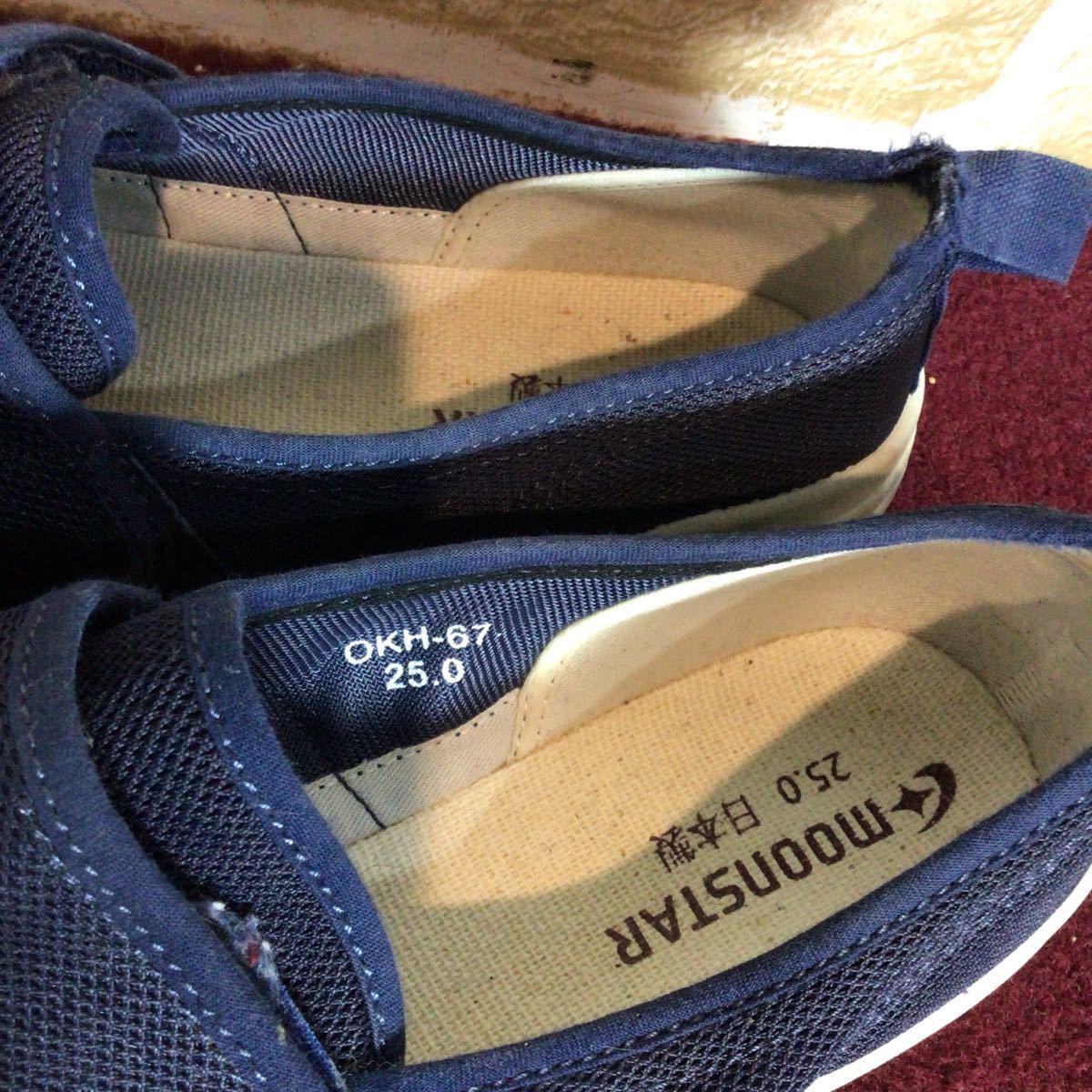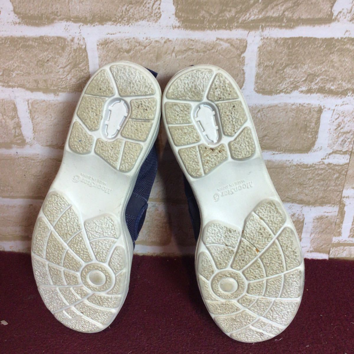【売り切り!送料無料!】A-336 moonstar!スリッポン!ネイビー!25.0cm!マジックテープ式!履きやすい!着脱楽!中古!