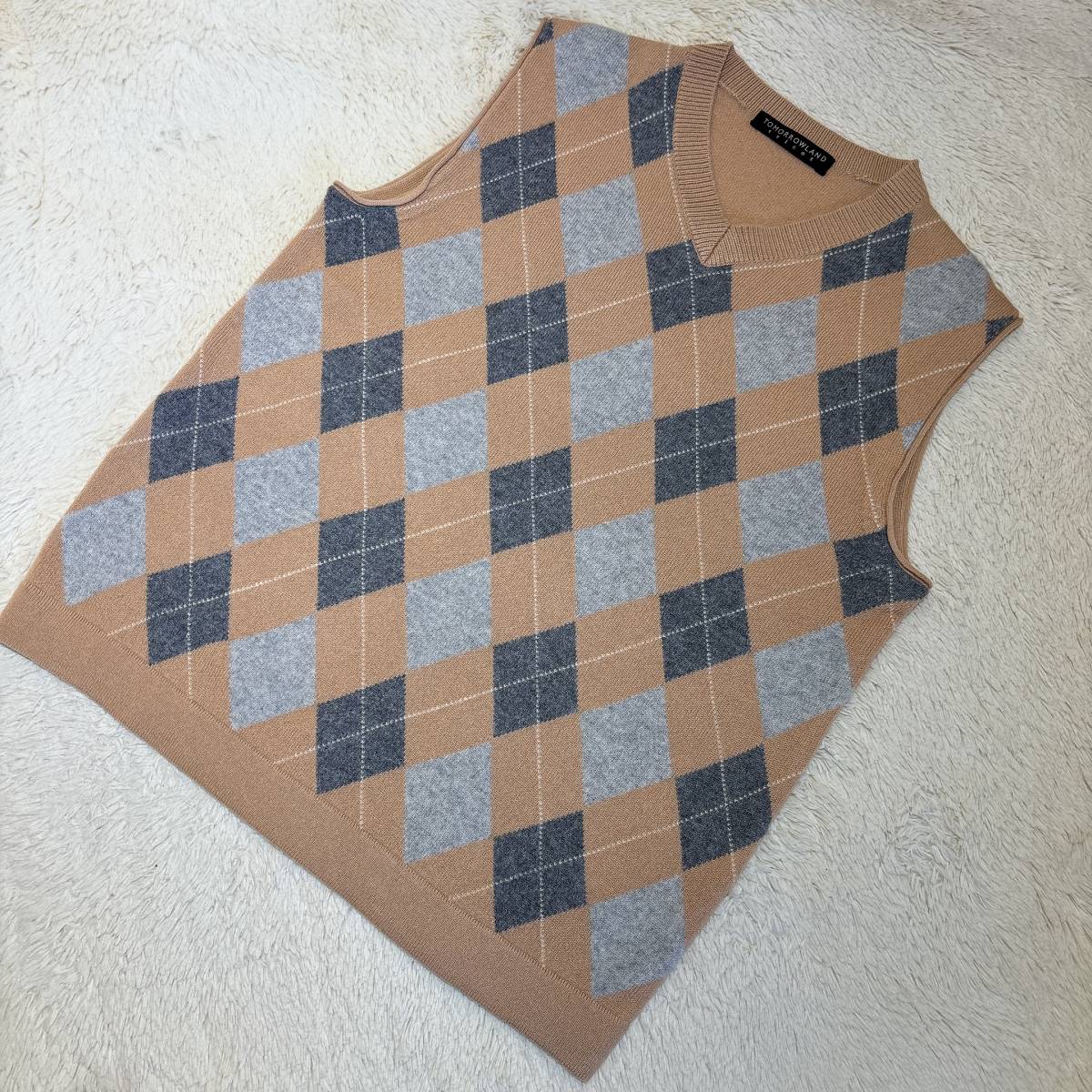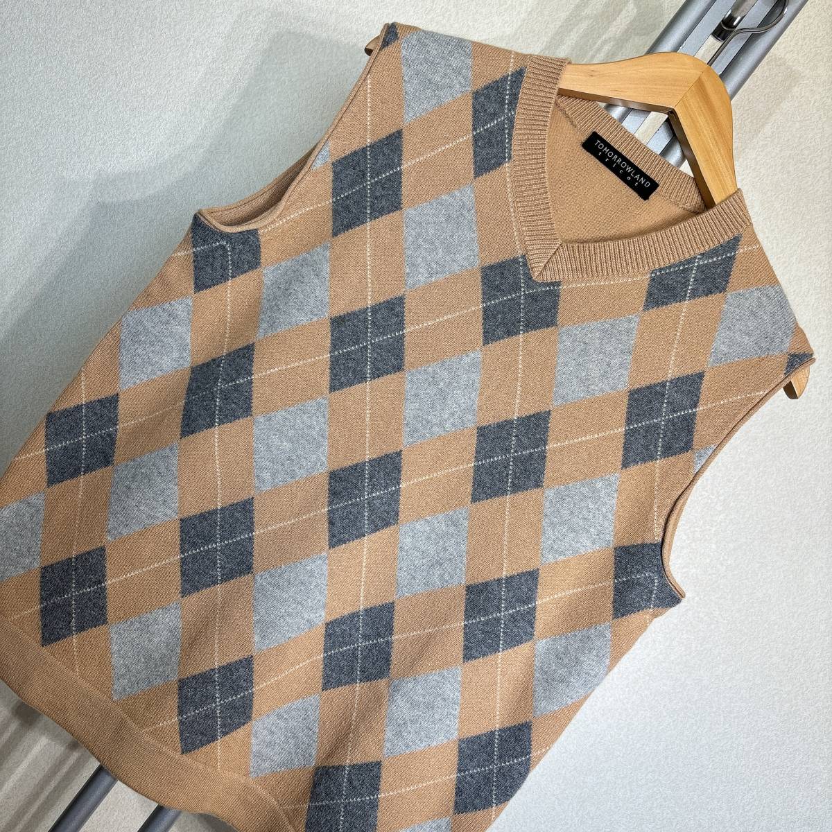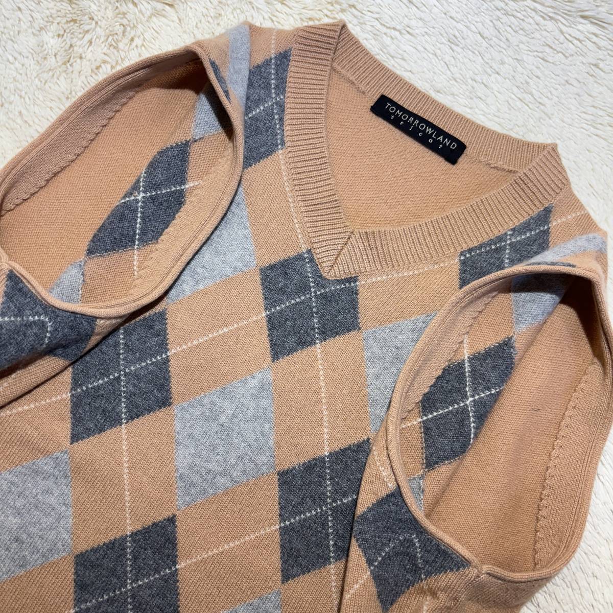 W817■トゥモローランド★カシミヤ100%★ベージュ*アーガイル/ニットベスト■M | ||||||||||||||||||||