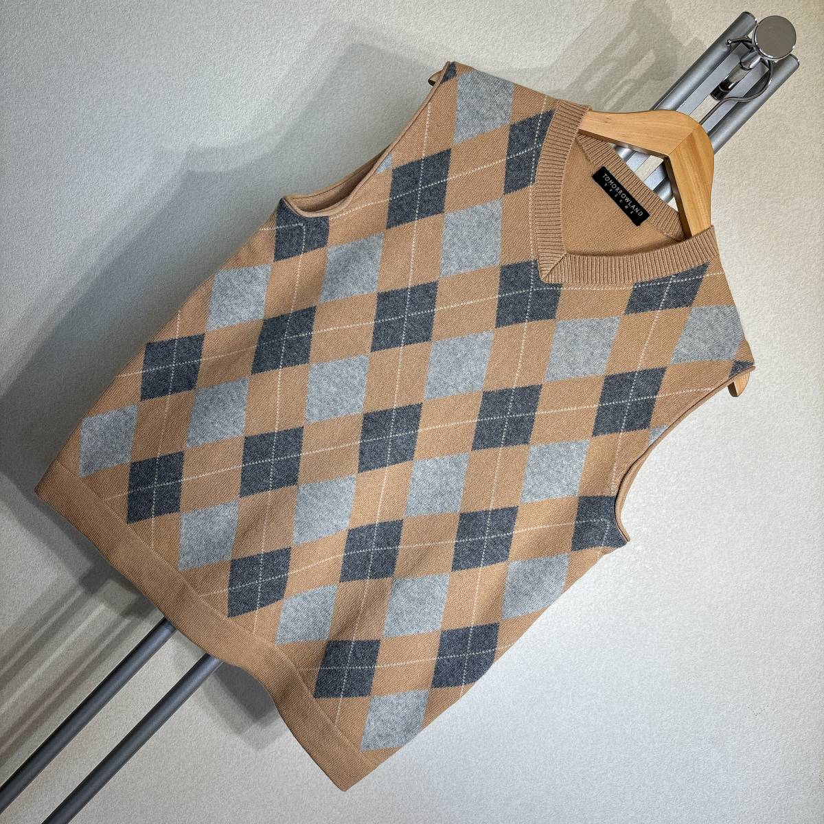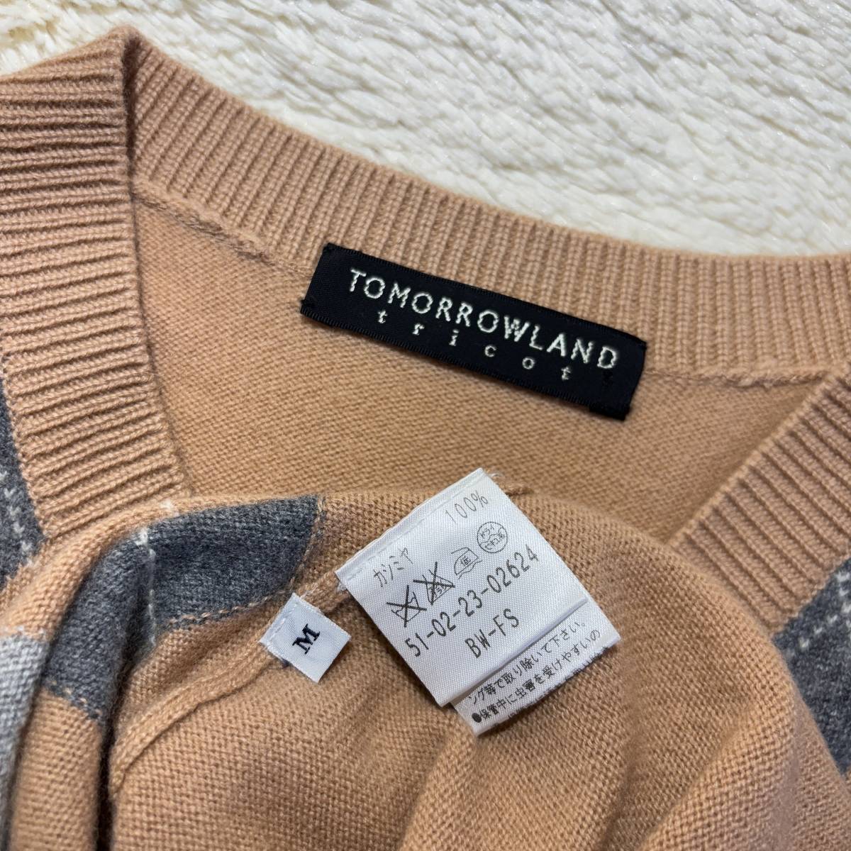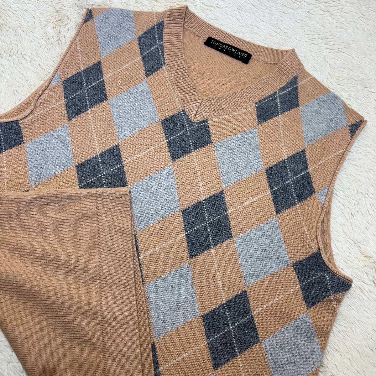W817■トゥモローランド★カシミヤ100%★ベージュ*アーガイル/ニットベスト■M | ||||||||||||||||||||
