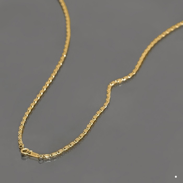 角スクロールチェーンは、スクロールチェーンのコマが角ばった状態になっているネックレスです。 ※イオンプレーティング(IPメッキ)とは、金属イオンと不活性ガスを反応させた化合物を製品に蒸着させるコーティングで、ガスの比率でカラーを調整します。従来の鍍金加工に比べて表面耐久性、密着性、工程の安全性が飛躍的に向上しております。 |