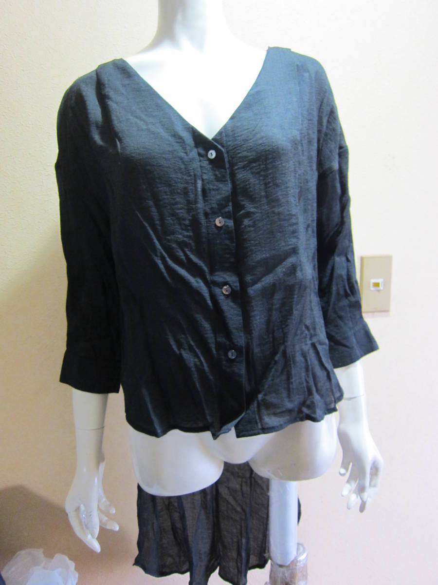 Color(色):画像参照 Size(表記サイズ):画像の表示参照 肩幅cm、身幅58cm(身幅が広いデザイン)、着丈88cm(前は約64cm)、袖丈cm (平置きで計測できる項目のみ記載) Material(素材):画像の表示参照 Condition(状態):着用感多少、問題なくお使いいただけます。 A note(備考):後ろが丈長く個性的です。 注)画像の白い丸はフラッシュの加減で、汚れなどではございません |