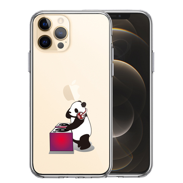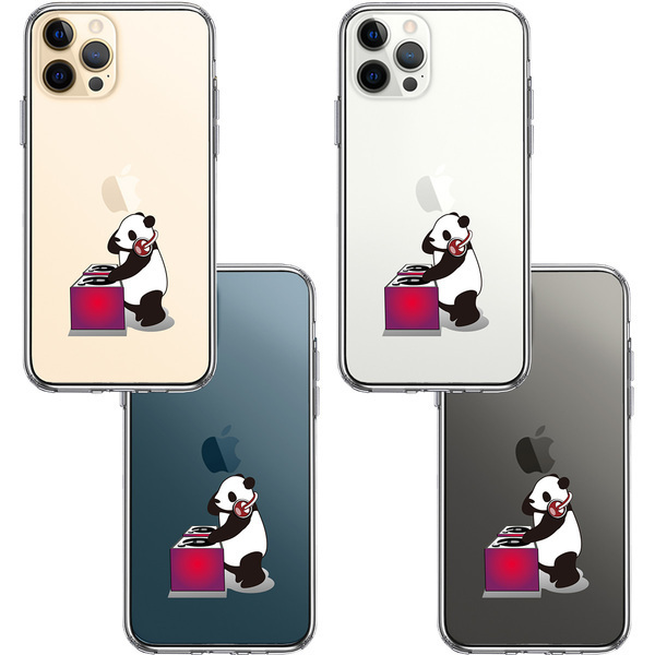 iPhone12Pro ケース クリア パンダ DJ スマホケース 側面ソフト 背面ハード ハイブリッド
