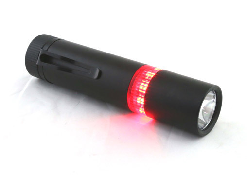 【品名】 合図灯機能付懐中電灯【型番】 HDF-P01【サイズ】 Φ38mm×167.5mm(突起物除く)【電池】 単3乾電池3本使用アルカリ・マンガン対応 ※Φ14mm以下の乾電池をご使用下さい。太さによっては入らない場合があります。 ※ 電池は別売です。【実用点灯時間】 懐中電灯:約2.4~3.7時間 合図灯:約10時間 点滅警告灯:約30時間【パターン】 オフ→メインライト点灯→赤色灯点灯→赤色灯高速点滅【スイッチ】 プッシュ方式【防水等級】 IP67相当【LED】 メイン:CREE XP-E2 合図灯:赤 SMD型×24PC【材質】 アルミニウム、PC、ステンレス【重量】 220g ※電池・電池ソケットを除く