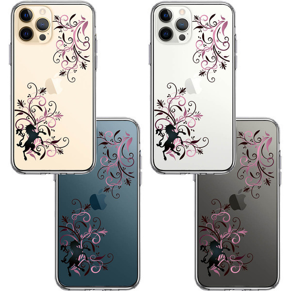 iPhone12Pro ケース クリア フローラル ユニコーン ピンク スマホケース 側面ソフト 背面ハード ハイブリッド
