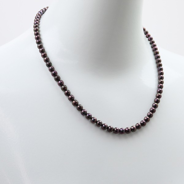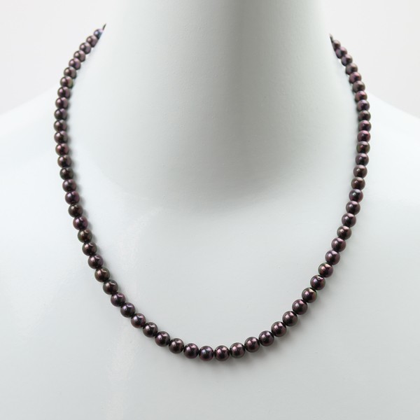 あこや真珠5.0-5.5mm黒真珠パールネックレスです。 | ブラック基調に赤みが入り色テリ綺麗です。ヨーロッパで人気のチョコレートカラーになります。 | |||