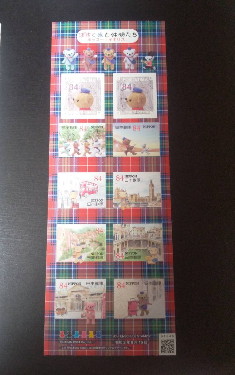ぽすくまと仲間たちグリーティング切手 令和3年(2021年)84円切手シール式シート になります。
