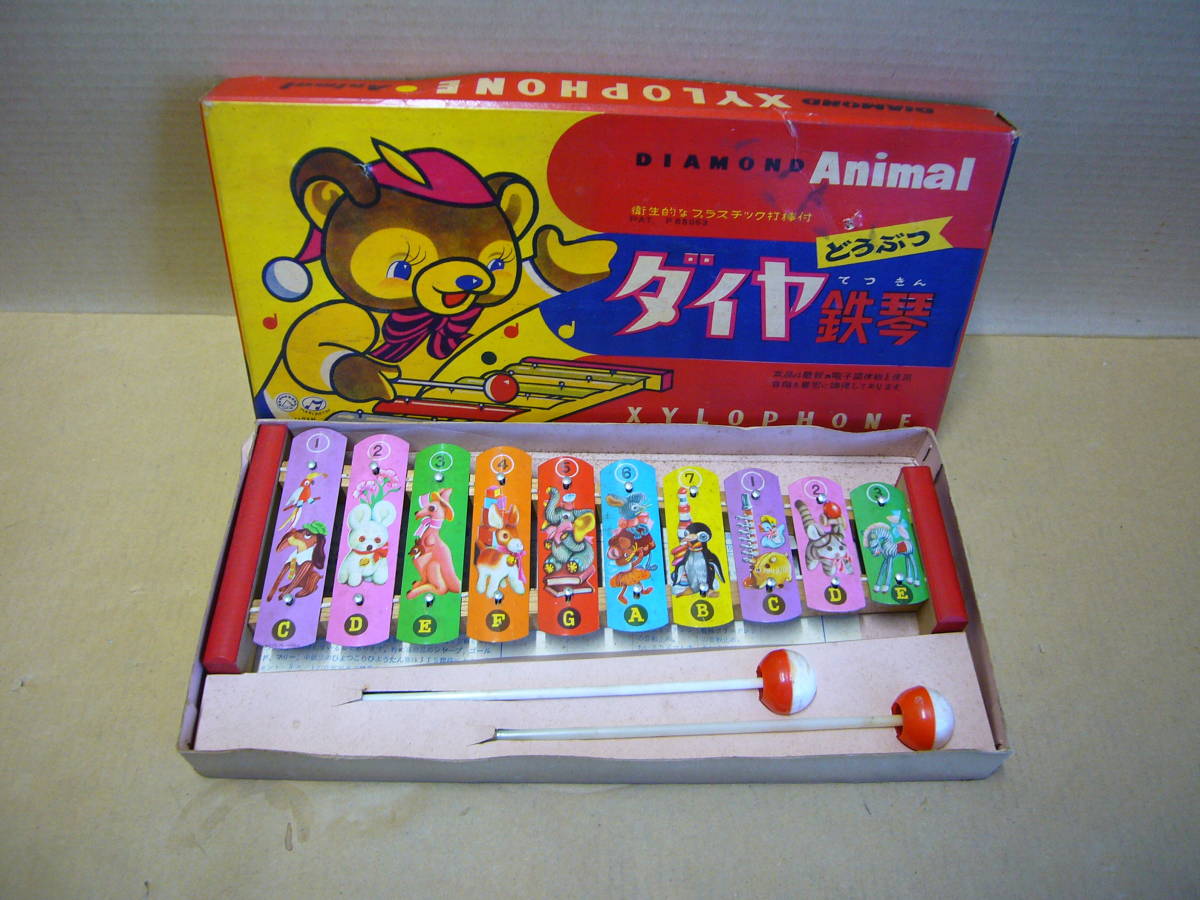 使用状況:DIAMOND どうぶつ 鉄琴 プラスチック打棒付 外箱在り 昭和レトロ/当時物 です。
