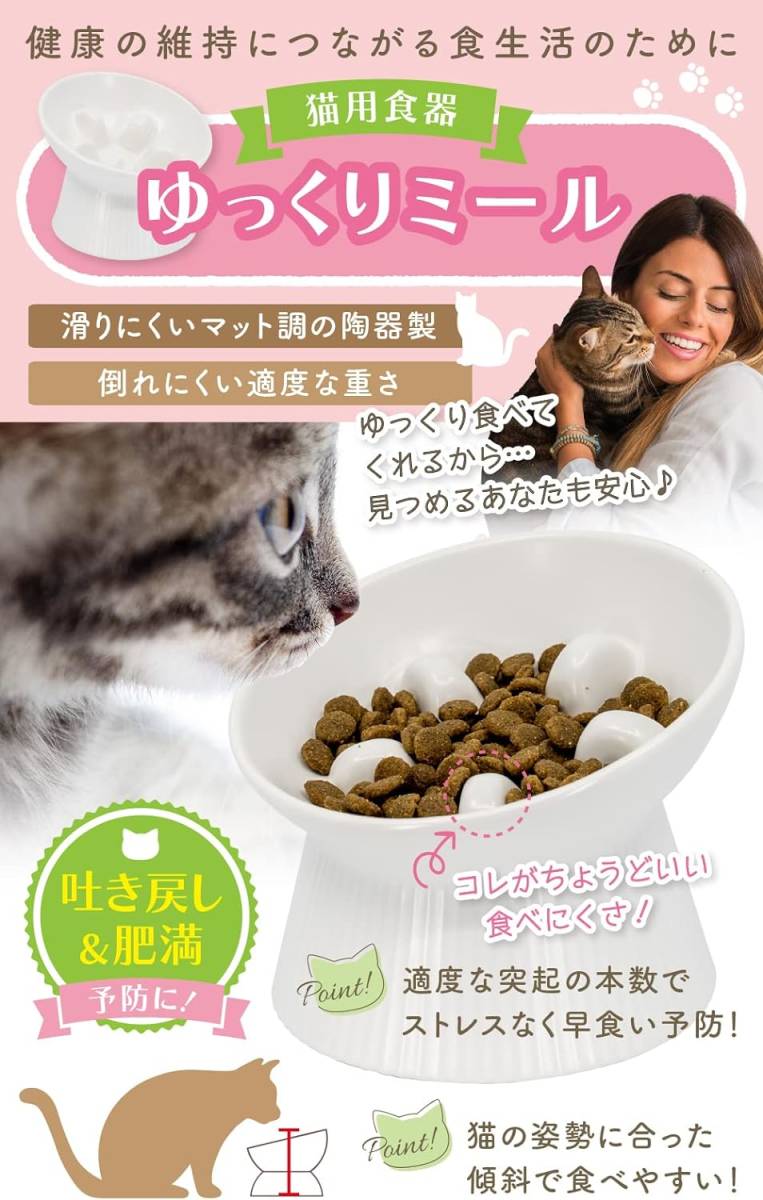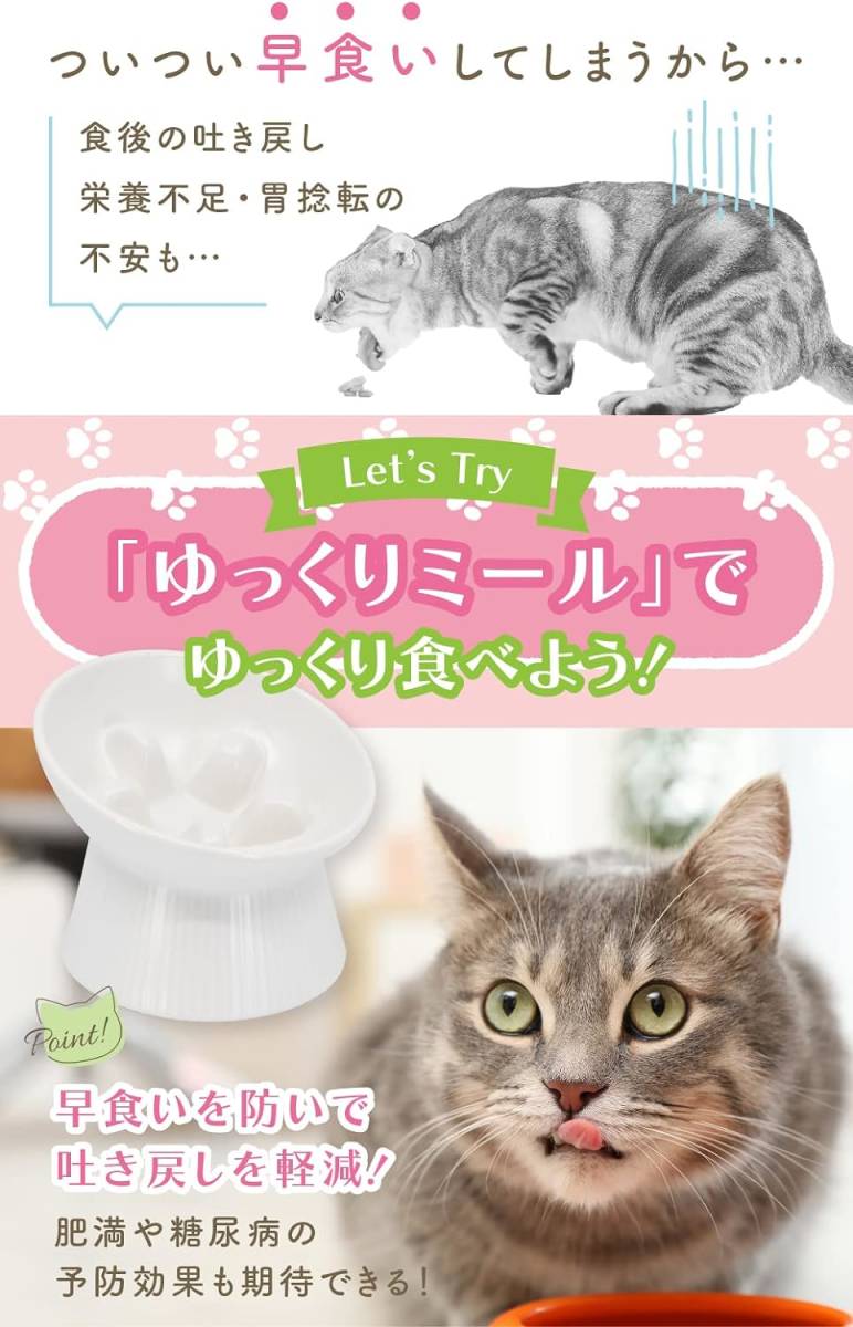 福猫物語 ゆっくりミール 猫専用食器 フードボウル 早食い防止 吐き戻し軽減 肥満 糖尿病 15度の傾斜 陶器製 小型犬/チワワ/パピーにも