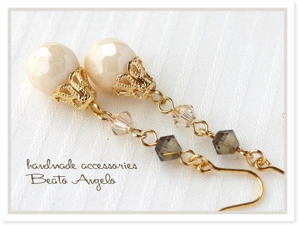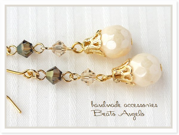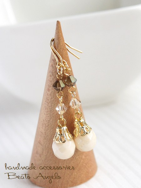 ◆◆+angelo+チェコビーズとスワロフスキーのピアス(p-304)アンティークホワイト G FP001 夏 チタン 樹脂 イヤリング
