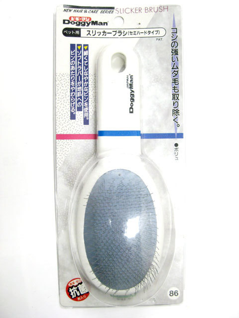 在庫品・ドギーマン ペット用スリッカーブラシ(セミハードタイプ)86 日本製 【定形外郵便390円】