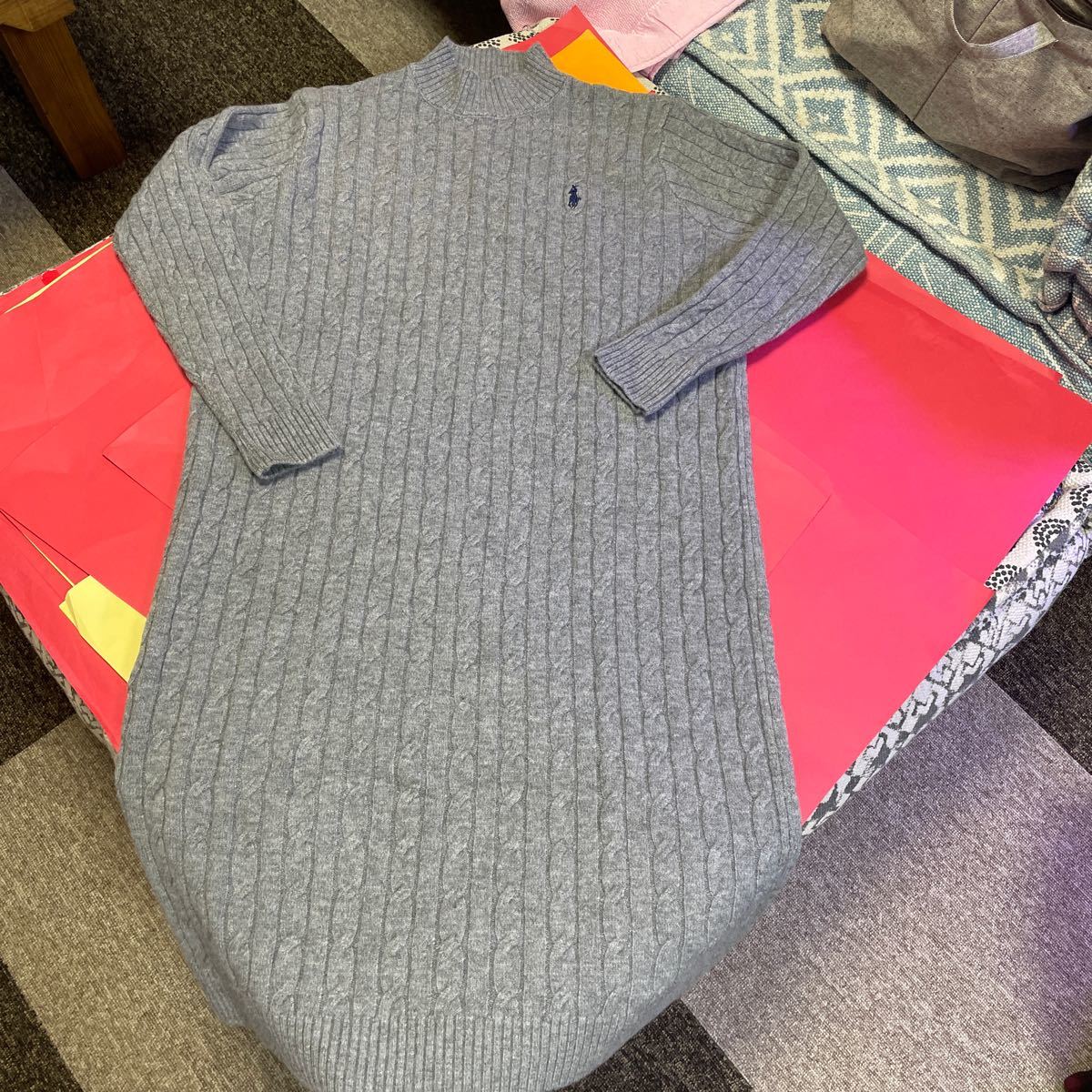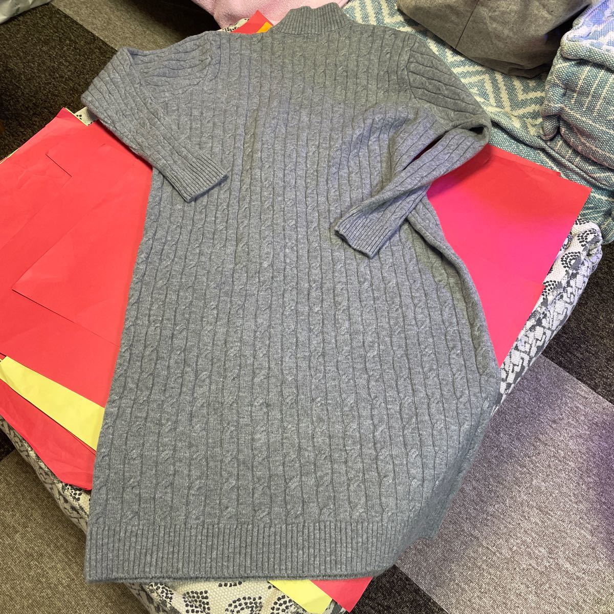 ゆったりしたサイズです、タグ無し、ポリエステル素材、ざっくりしたニット、身丈約100センチ.肩幅42センチぐらい.身幅53センチ