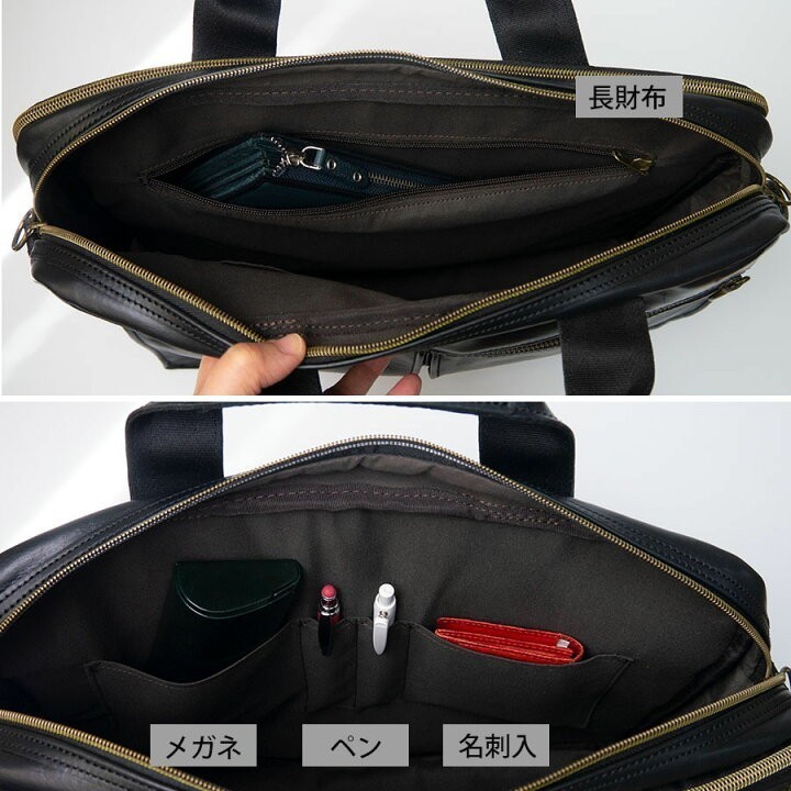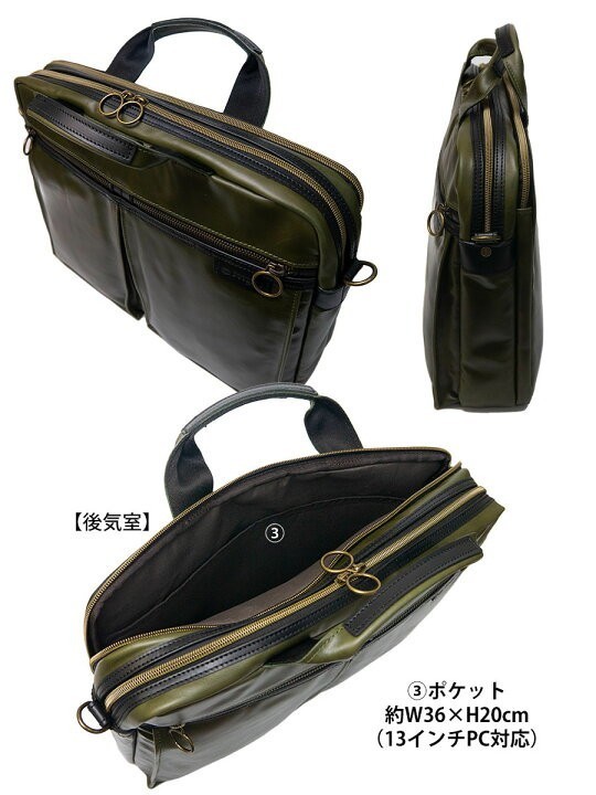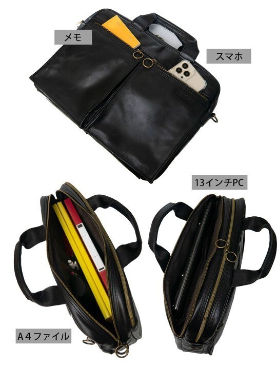 ●使うほどに味わいが増していくオイルレザーに拘りのファスナーを組み合わせヴィンテージ感を堪能いただけるビジネスバッグです。ショルダーベルトが付属しており2WAYでお使いいただけます。
