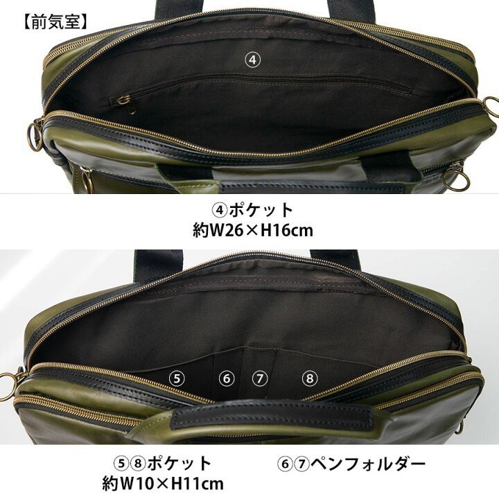 ■ポケットの数:【前面】ポケット×2【前気室】ポケット×3、ペンフォルダー×2【後気室】PCポケット×1