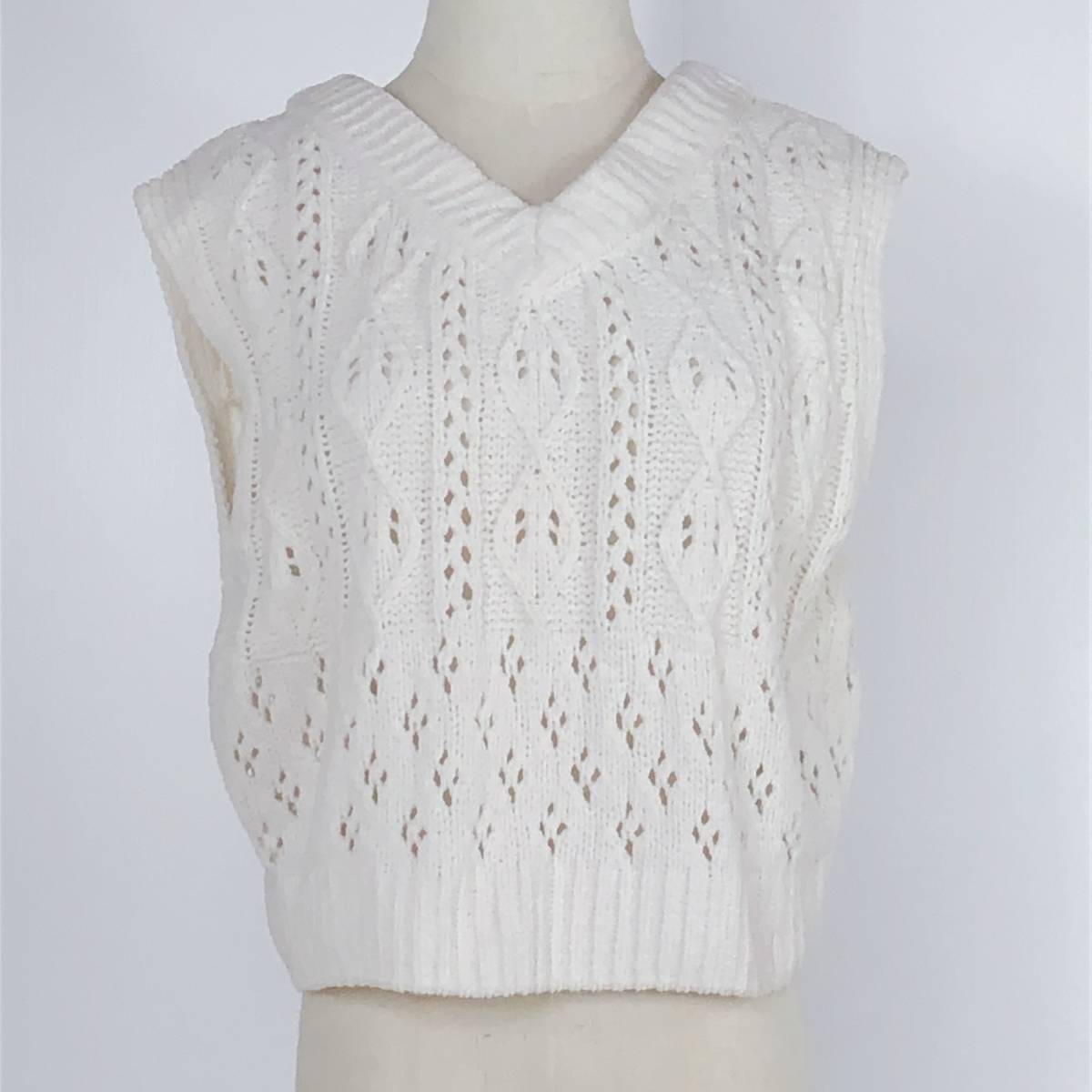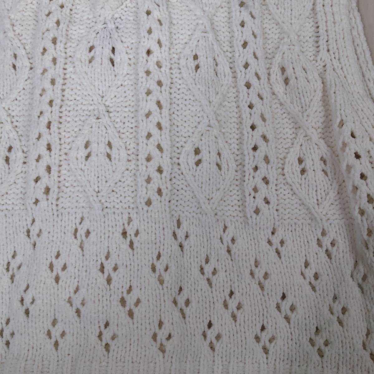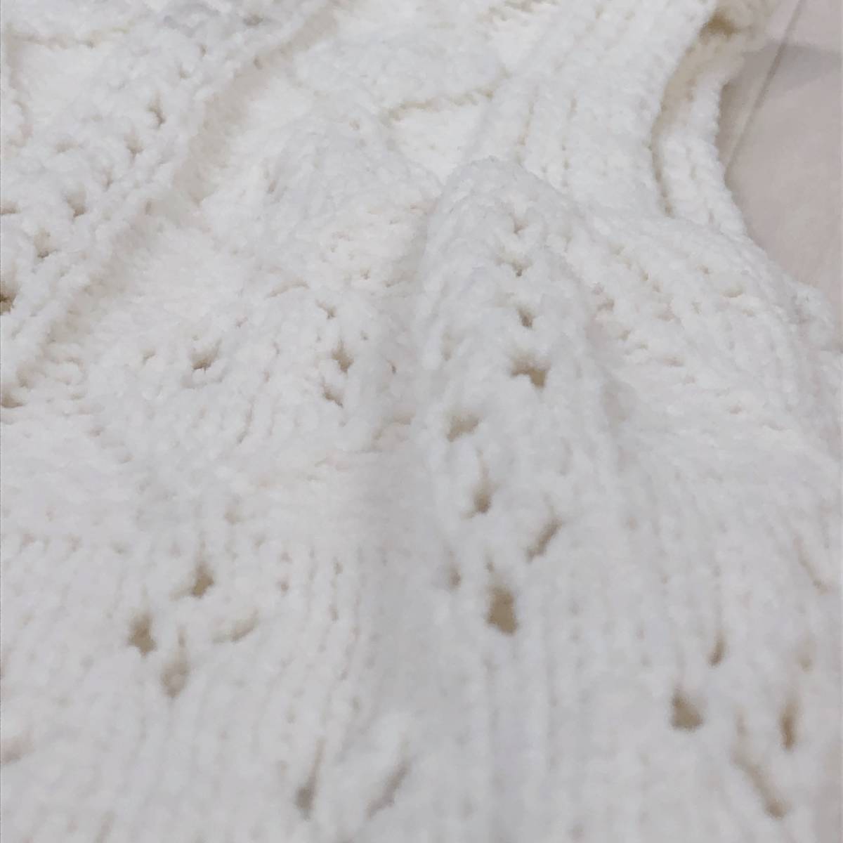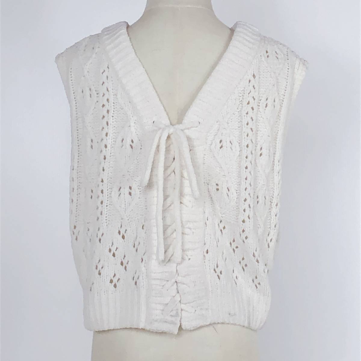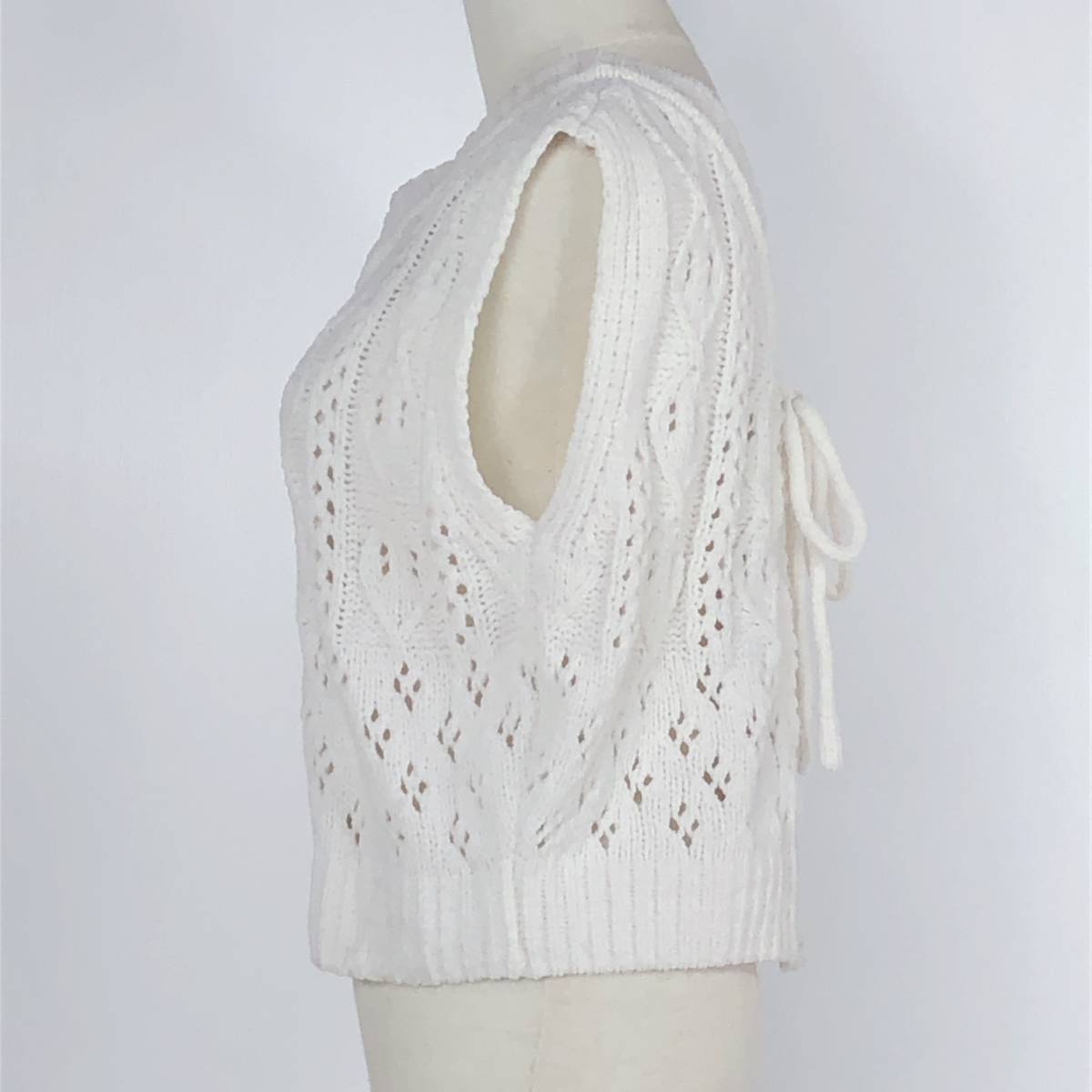 Y0438 美品 KHALITA ハリータ しまむら レディース トップス ベスト ジレ 袖袖 ニット ショート丈 編み上げ Mサイズ ホワイト 白 あったか