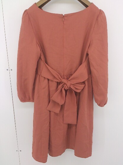 ◇ anatelier アナトリエ バックリボン 長袖 ミニ ノーカラー ワンピース サイズ 38 オレンジブラウン レディース