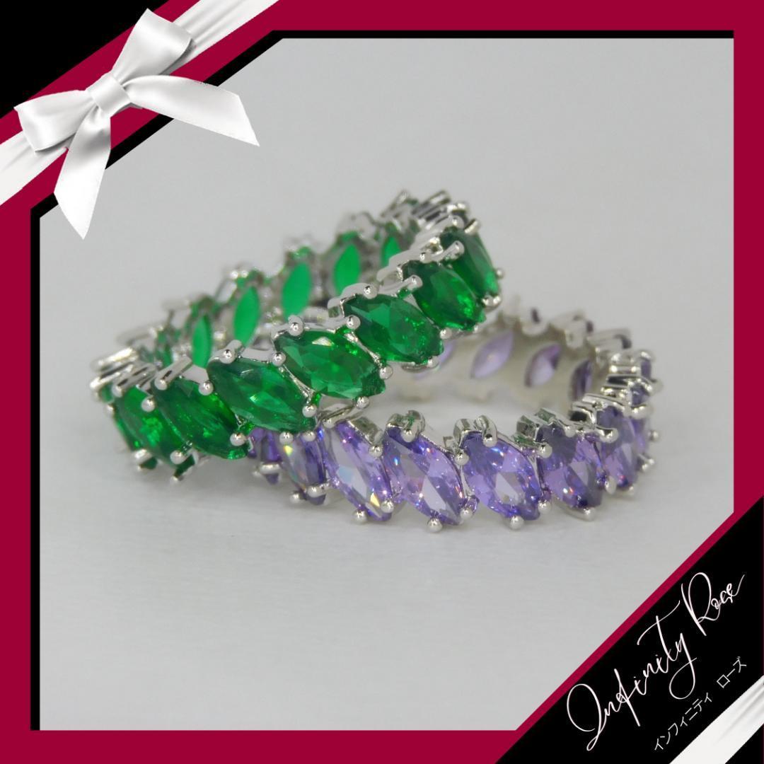 #グリーン斜めオーバル高価爪留めジルコニアリング
