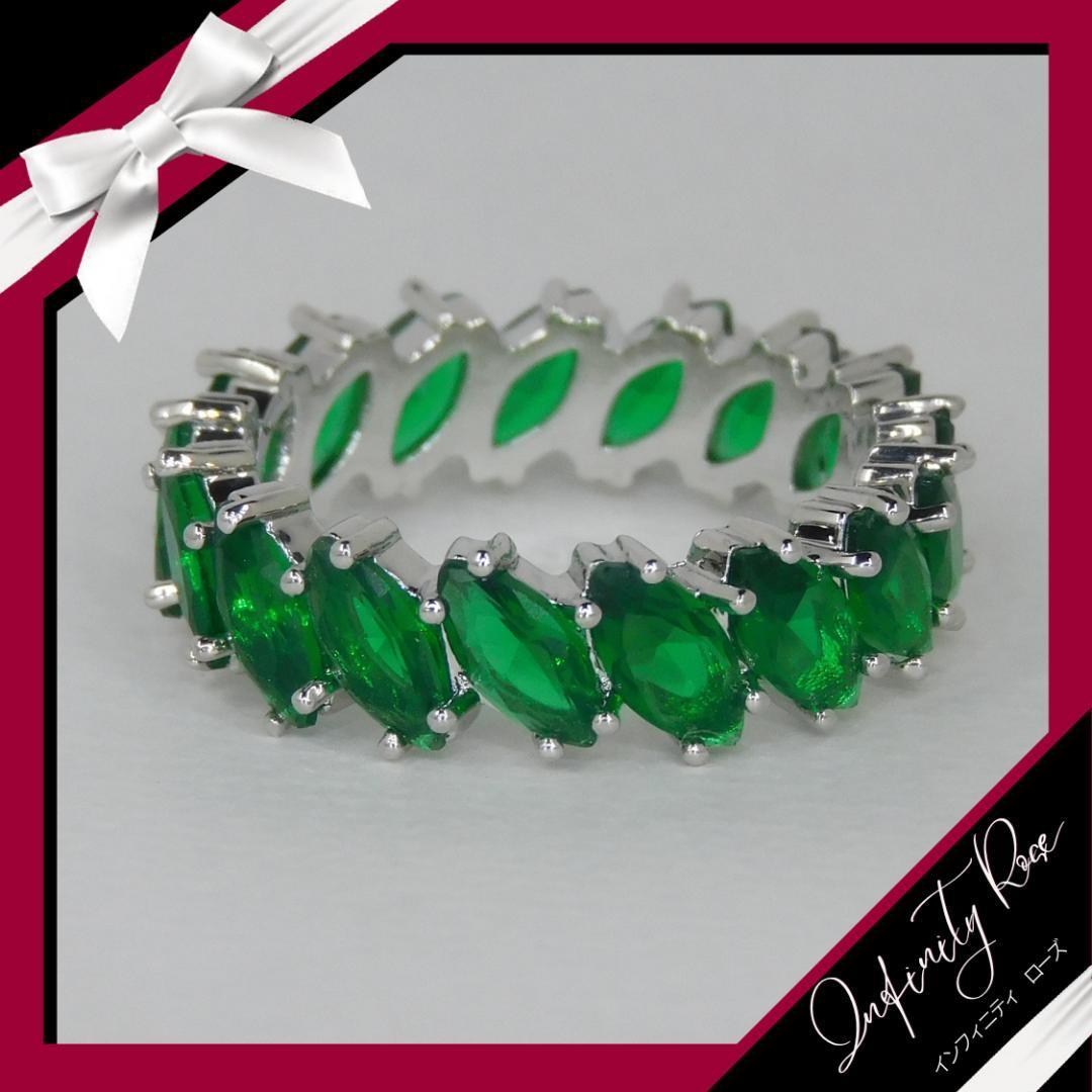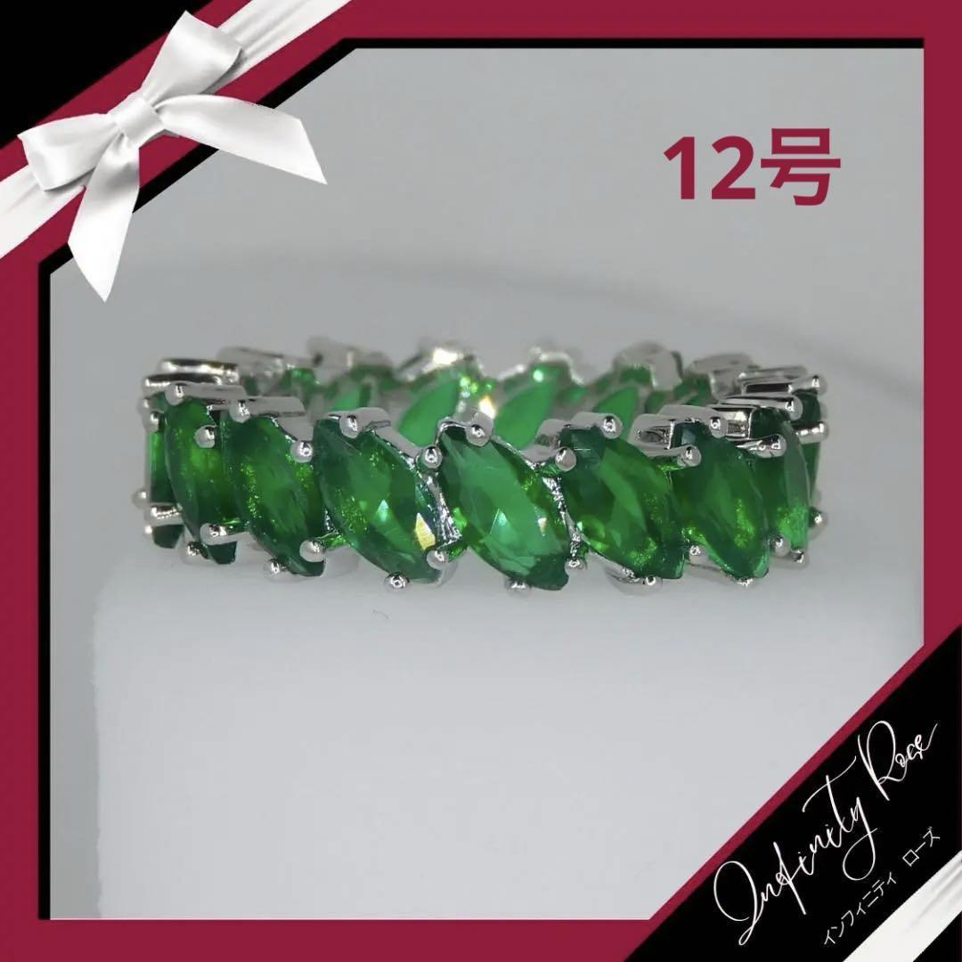 (R022SG)12号 グリーン斜めオーバル高価爪留めジルコニアリング