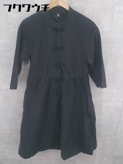 ◇ merlot メルロー チャイナ風 長袖 膝丈 ワンピース FREE ブラック レディース