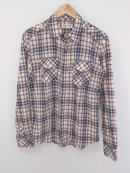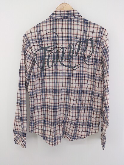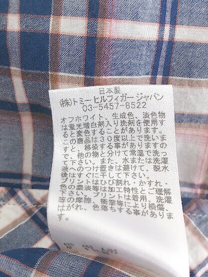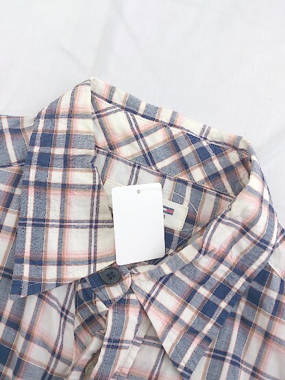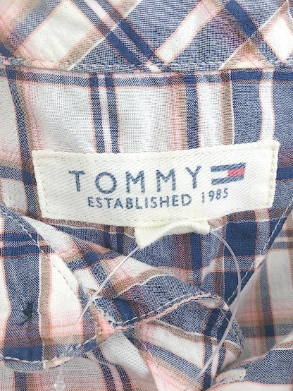 ◇ TOMMY トミー チェック 胸ポケット 長袖 シャツ サイズM ホワイト ネイビー ピンク系 メンズ P