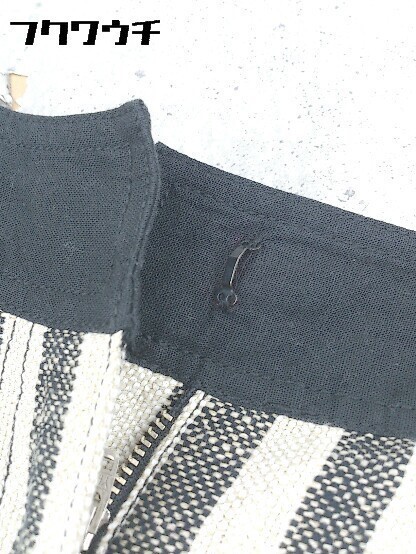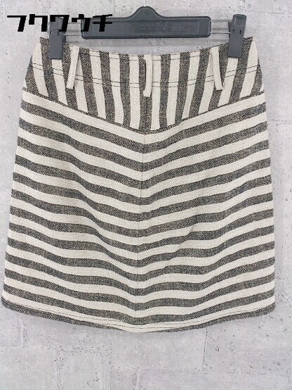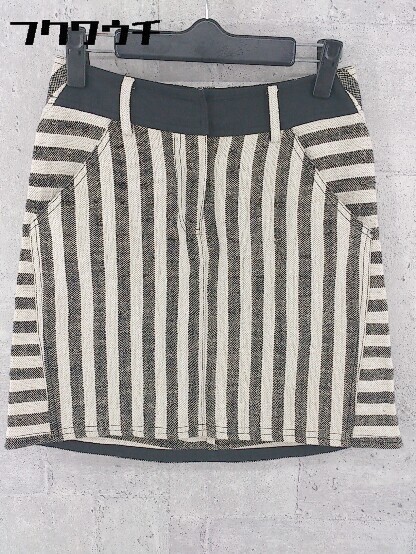 ◇ DEREK LAM デレクラム リネン USA製 ストライプ ミニ 台形 スカート ベージュ ブラック * 1002799652407