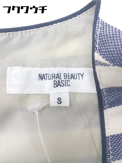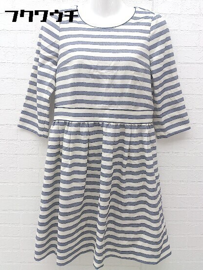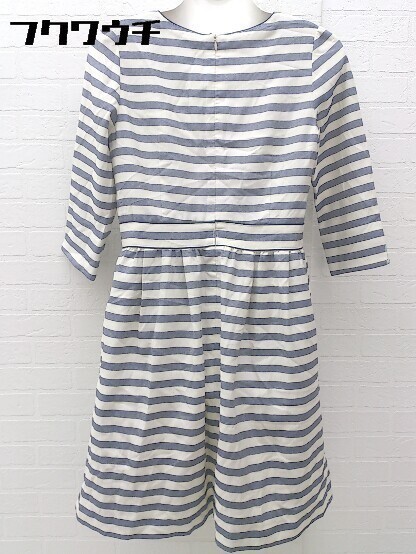 ◇ NATURAL BEAUTY BASIC ボーダー バックジップ 七分袖 膝丈 ワンピース Sサイズ オフホワイト ネイビー系 レディース