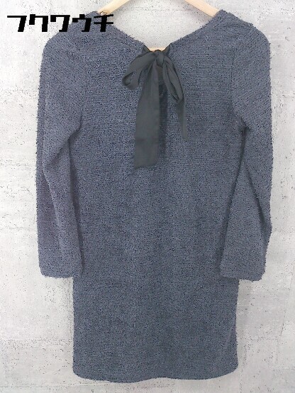 ◇ NATURAL BEAUTY BASIC ナチュラルビューティーベーシック リボン 長袖 膝丈 ワンピース サイズM グレー レディース