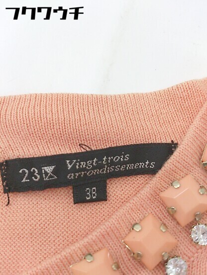 ◇ 23区 vingt trois arrondissements コットン ニット ビジュー 長袖 セーター サイズ38 オレンジ レディース