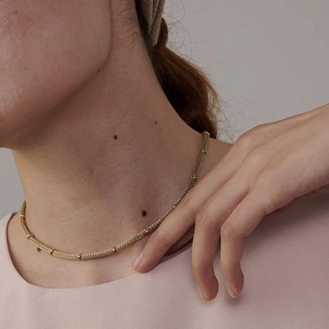 短めサイズのゴールドチェーンが目を引くネックレスです♪