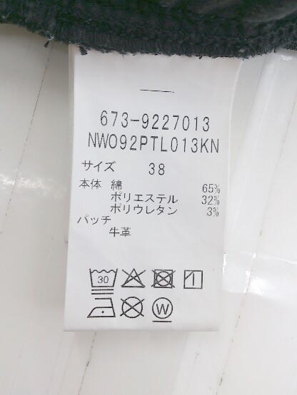 ◇ nano universe ナノユニバース ストレッチ 牛革パッチ パンツ サイズ38 ブラック レディース P