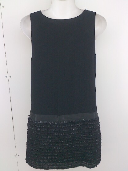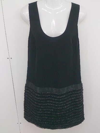 ◇ ERIN エリン 切替 フリンジ ノースリーブ ミニ ワンピース サイズ2 ブラック ラメ レディース