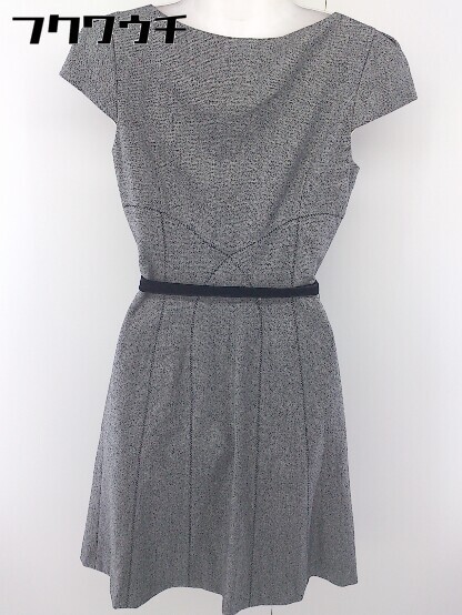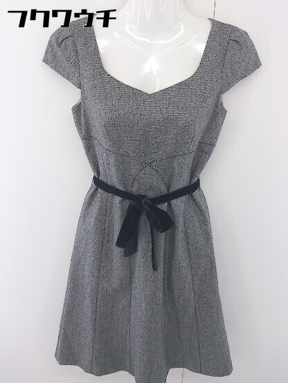 ◇ ◎ ROPE' ロペ ウエストリボン ウール ニット 半袖 膝丈 ワンピース サイズ 7AR グレー ブラック レディース