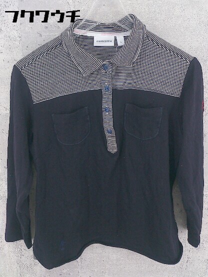 ◇ Ashworth アシュワース 七分袖 シャツ カットソー L ネイビー ホワイト * 1002799298384
