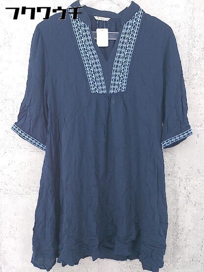 ◇ BEAMS HEART ビームス ハート 七分袖 ミニ ワンピース ネイビー レディース