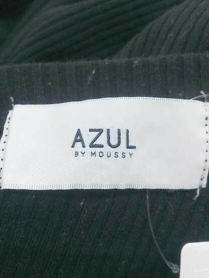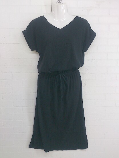 ◇ AZUL BY MOUSSY Vネック ウエストゴム リブニット フレンチスリーブ 膝下丈 ワンピース サイズM ブラック レディース P