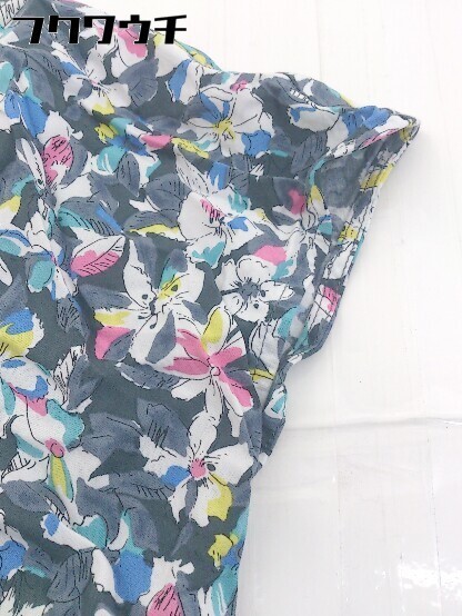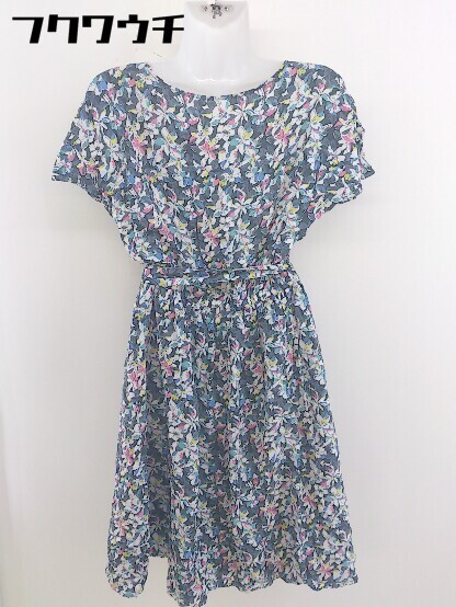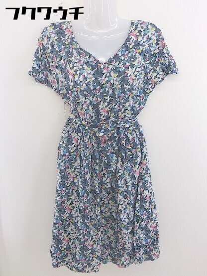 ◇ ◎ NATURAL BEAUTY BASIC 花柄 フレアスリーブ 膝丈 ワンピース サイズS グレー マルチ レディース