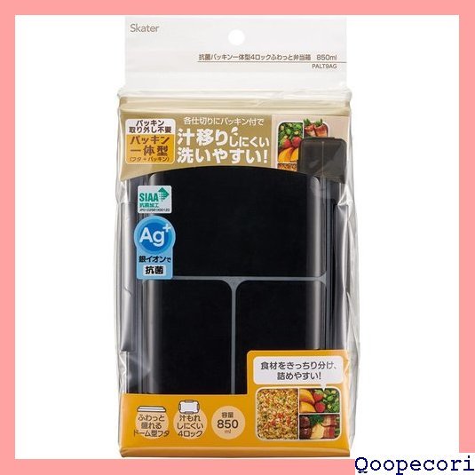 スケーター Skater 弁当箱 抗菌 汁漏れ防止 仕切付き パッキン 一体型ふわっと 盛れる 1段 850ml 大容量 ブラック PALT9AG-A 50