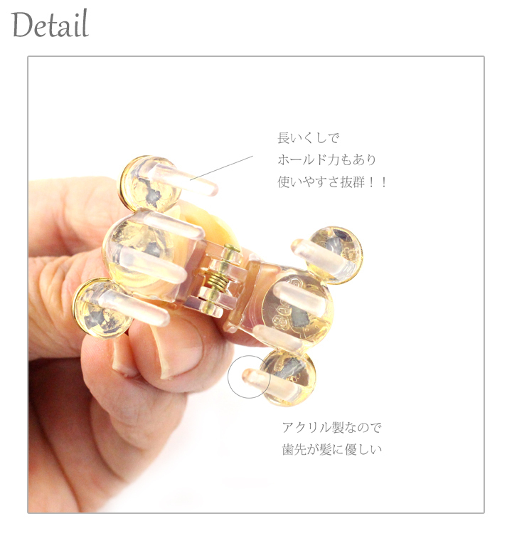 商品説明 | ビーズモチーフが連なったミニクリップ。前髪やサイドのちょこっと留めにおすすめ♪ 長めの足がしっかりホールドしてくれますので、お団子ヘアも作れちゃいます。 かさばらないミニサイズは、バッグにしのばせておくのにGOOD!! ちょっとした際に大活躍すること間違いなしです☆ |