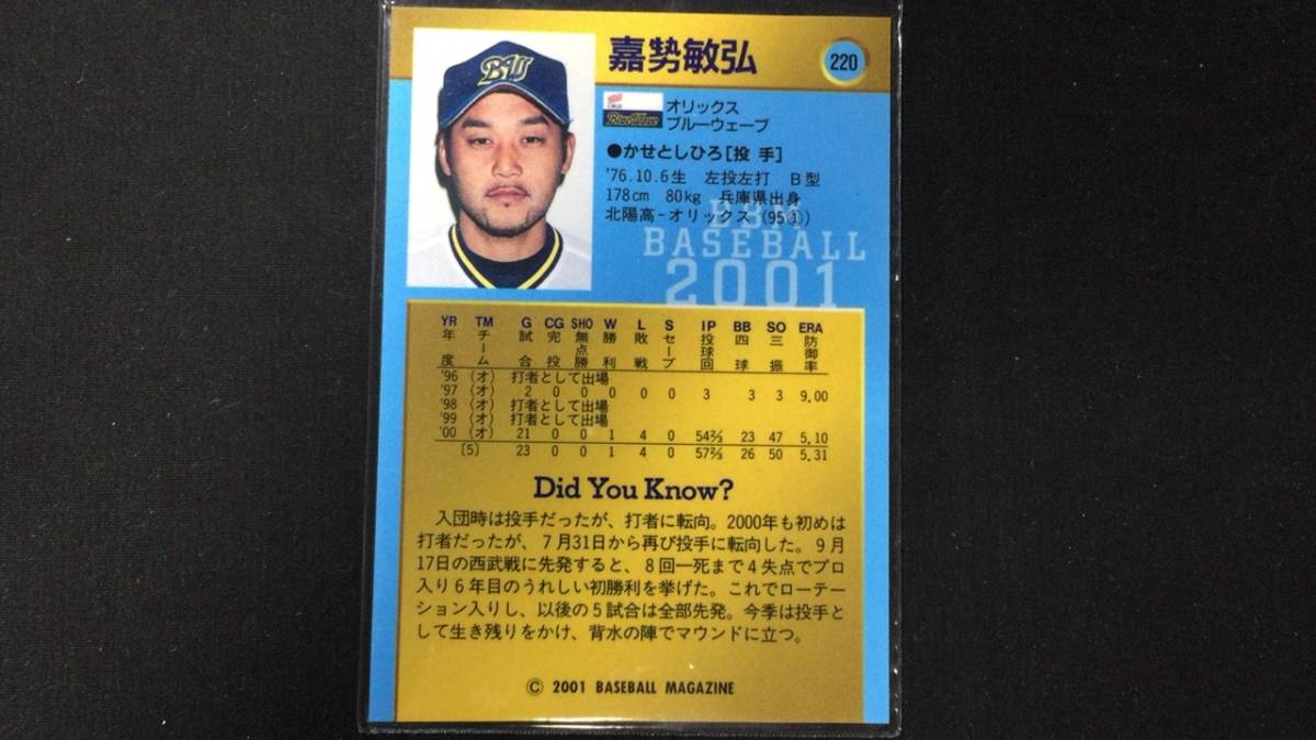 【直筆サイン入りBBM167】嘉敏弘●オリックスバッファローズ/ブルーウェーブ●検)阪急ブレーブス近鉄プロ野球カードルーキーカルビー