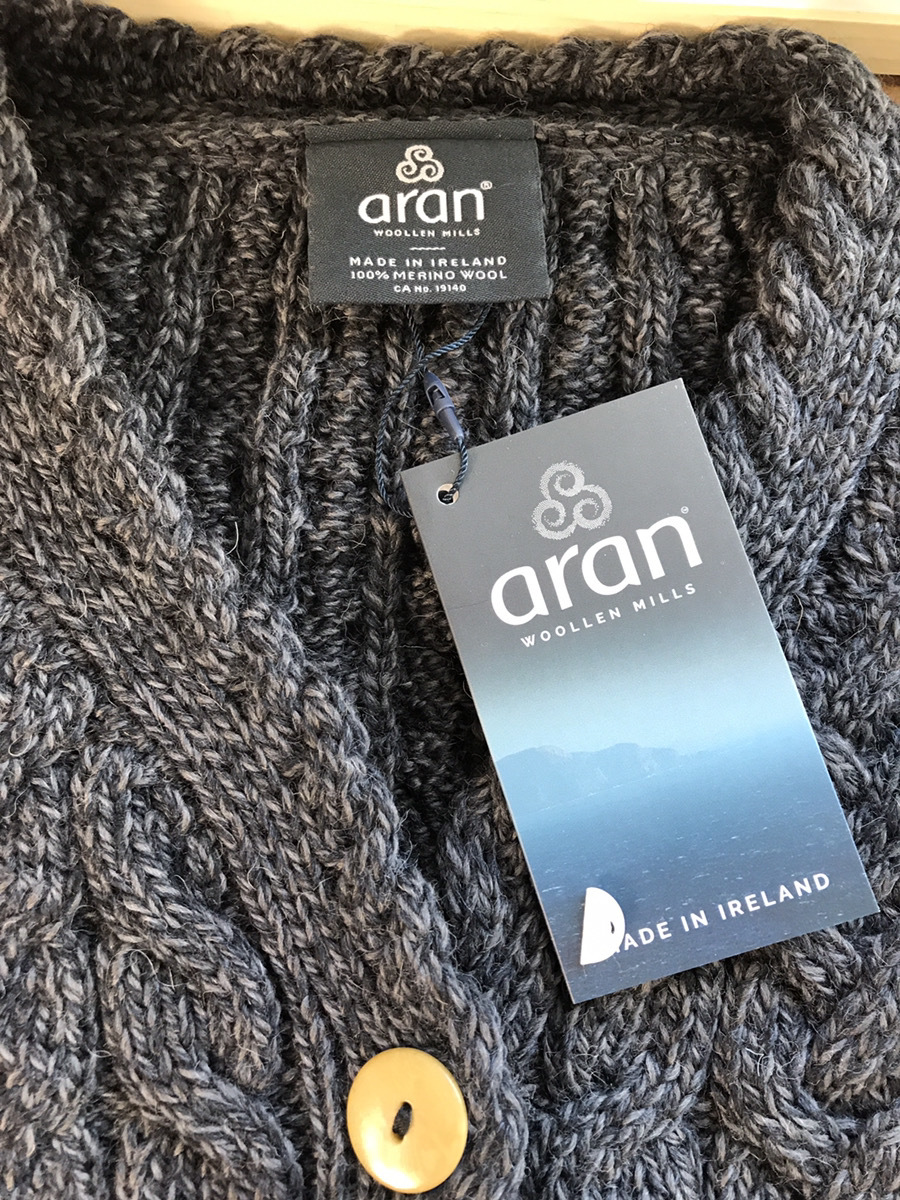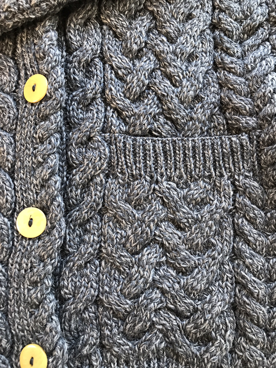 使いやすいVネックにアラン模様が美しいカーディガン。 最高品質のメリノウールを使用していますので、 チクチク感も少なく快適な着心地です。