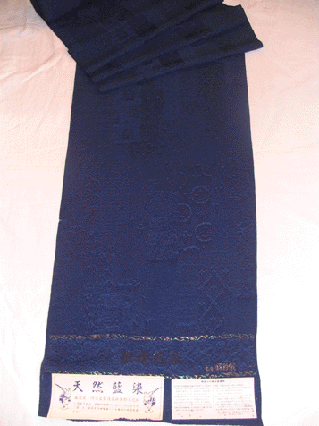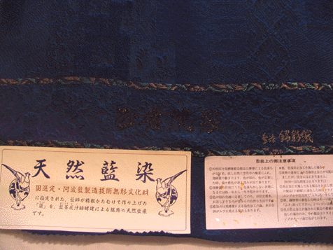生地は、国産の錦彩織を使用し、国指定 阿波藍製造技術無形文化財に指定された 藍師が精魂かたむけて、天然の藍で染めました。