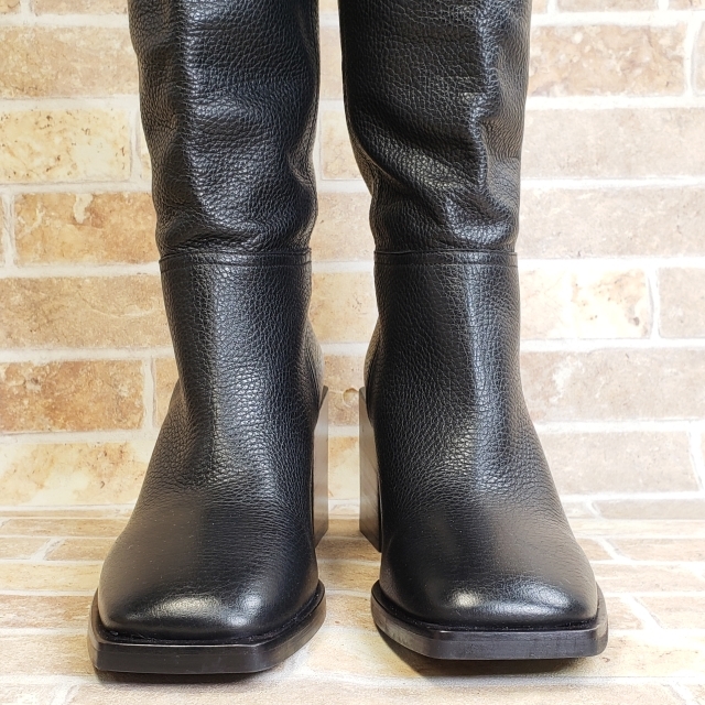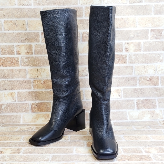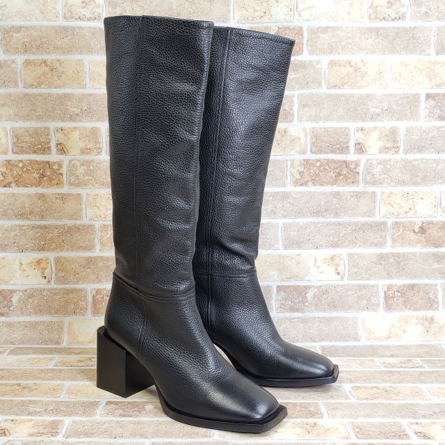 未使用 マックス&コー ブロックヒール レザー スクエアトゥ ロングブーツ 37イタリア製 黒 ブラック MAX&CO. | |