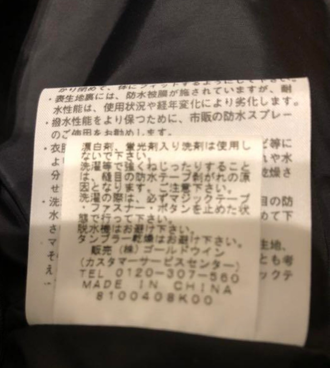 国内ゴールドウィンの国内販売されたノースフェイスになります。