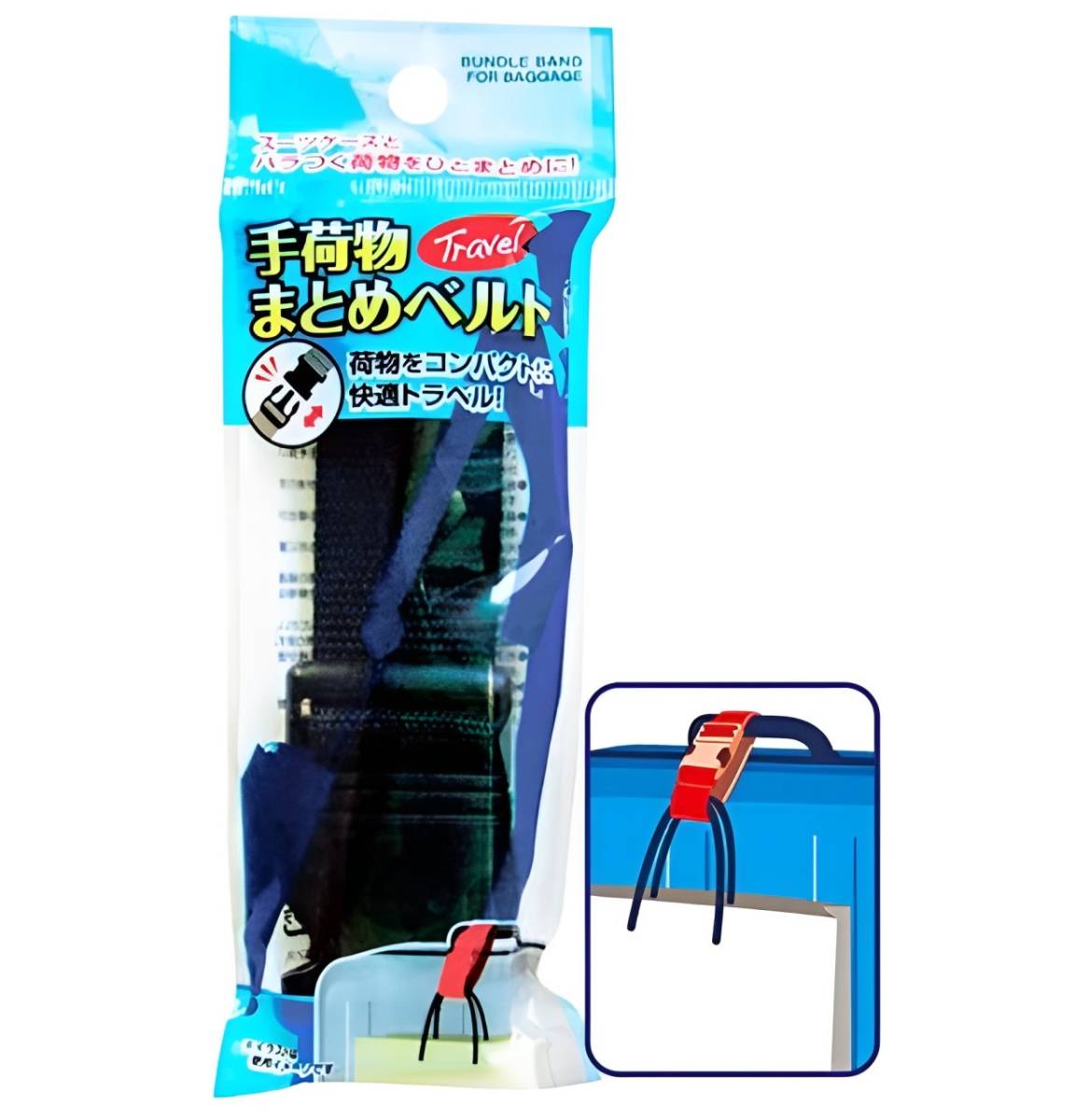 旅行時に増えがちな手荷物をまとめる手荷物おまとめベルトです。スーツケースに手荷物、お土産用のバッグなどを固定し、まとめて持ち運びしやすくします。パッケージサイズ:180×65×15mm※一つの価格です。パッケージのデザインは写真と少々異なる場合があります