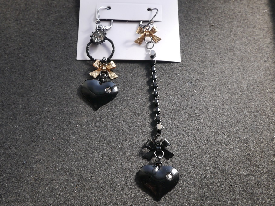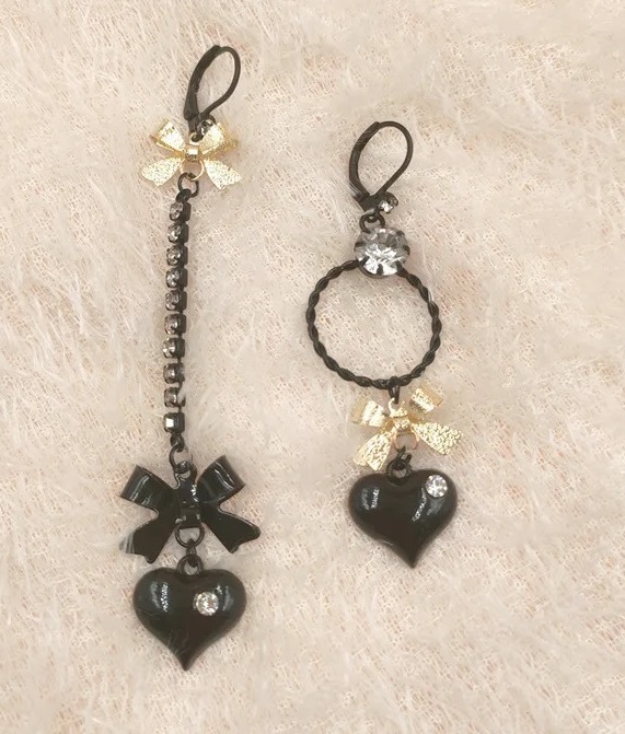 新品 ゴスロリ姫系 アンティーク調ゴシックゆらゆらハートストーンピアス BETSEY JOHNSON パーティ 結婚式 ドレス キラキラ 可愛い