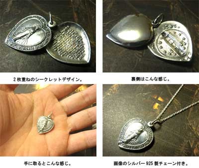 2枚重ねのシルバーフレームに聖母マリアをデザインしています。 手に取ると神々しいほどに輝くマリア像に心服。クリスチャンは必見。 高価シルバー925製チェーン(40/45/50)付ですぐに使えてお得感も満載。 |