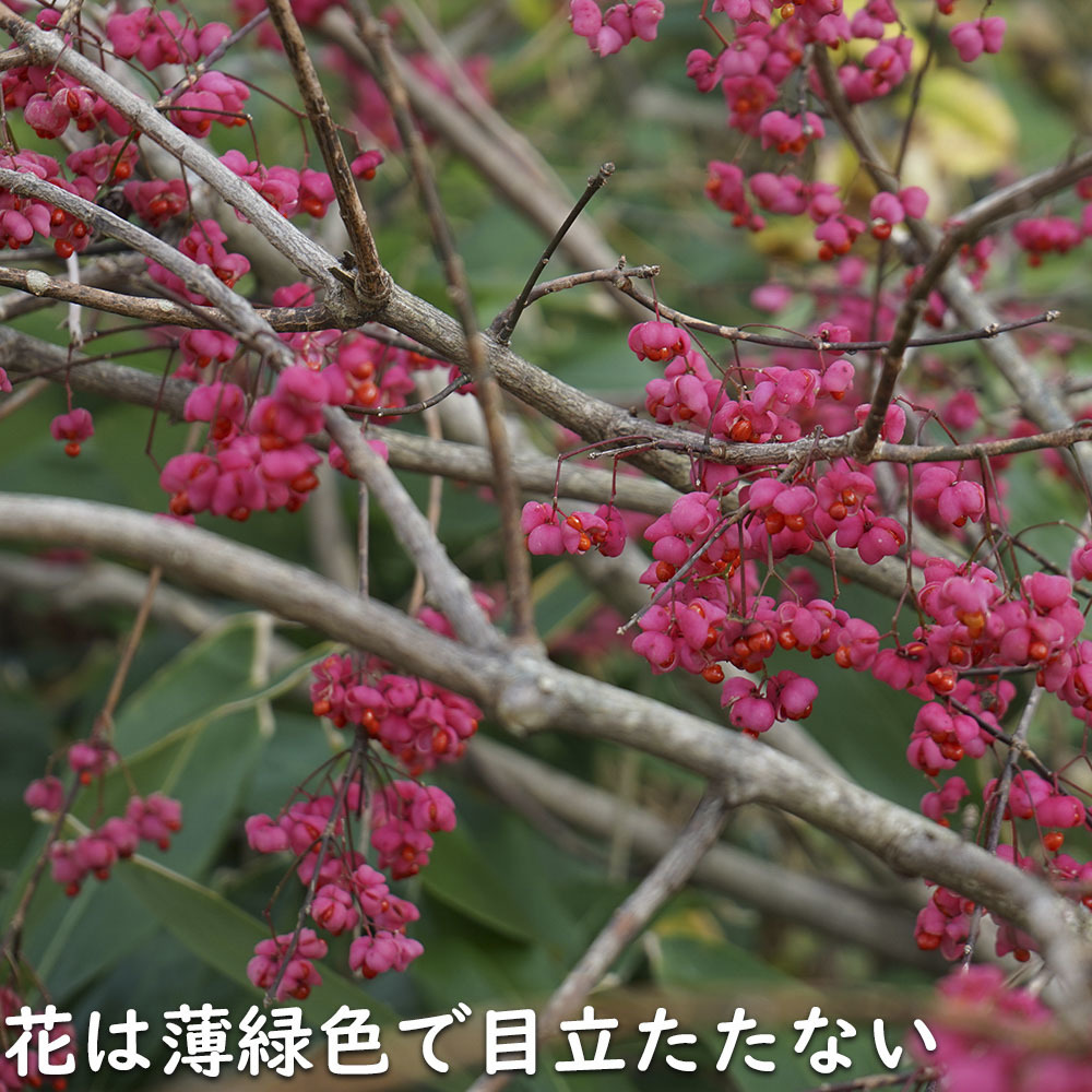 マユミは実が美しい品種です。実がなるときはメジロなどがよく食べにきます。剛健な品種ですので殆ど手間が要りません。