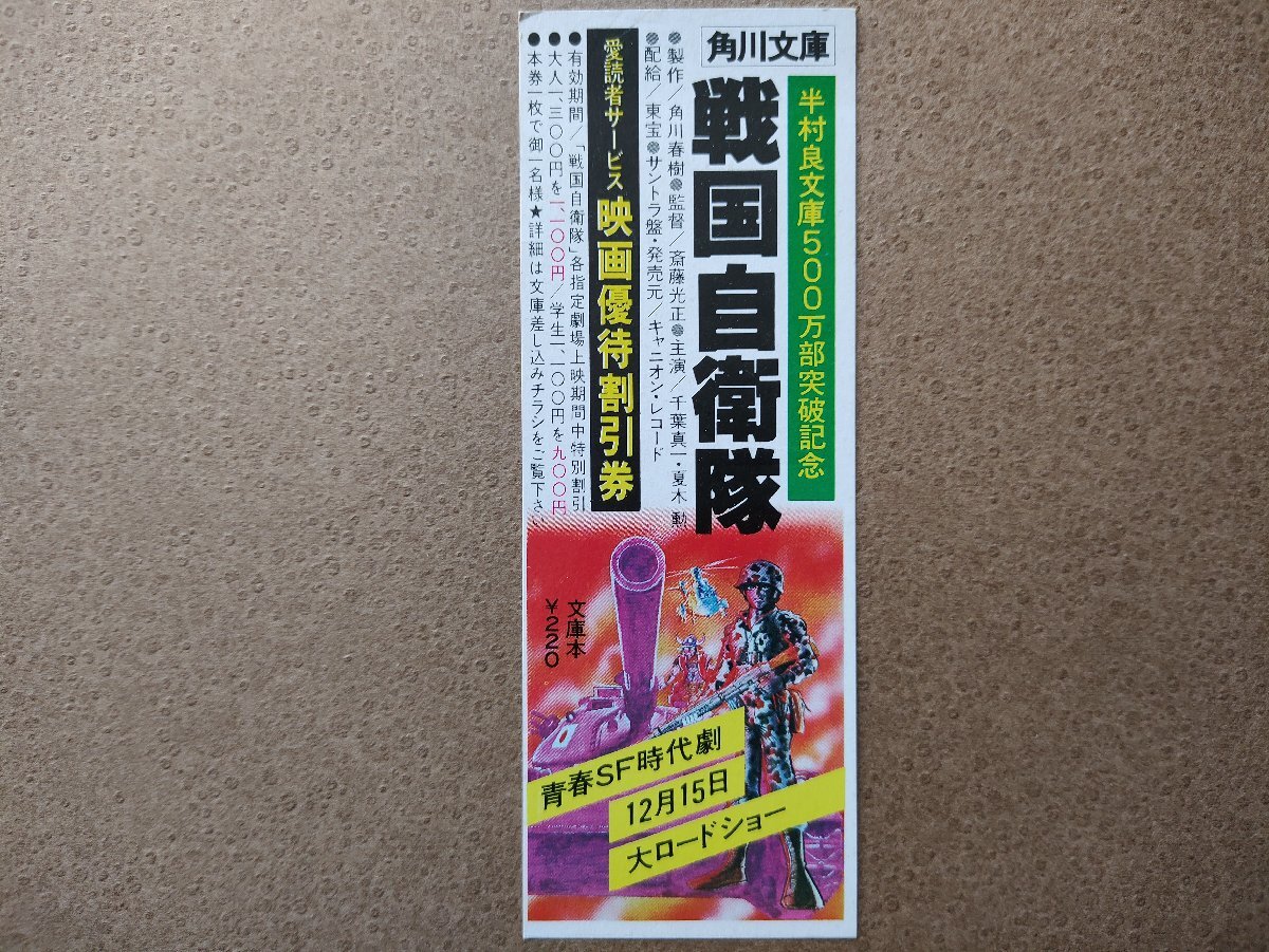 角川文庫 戦国自衛隊 映画優待割引券 ビーバーエアコン