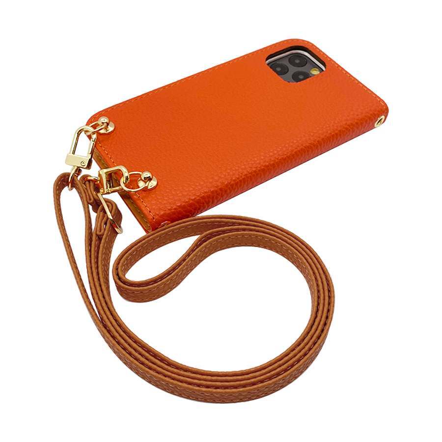 AQUOS sense3 plus SHV46 スマホショルダー(手帳テラコッタオレンジ×ストラップ:アプリコット)カバー 手帳 くすみカラー