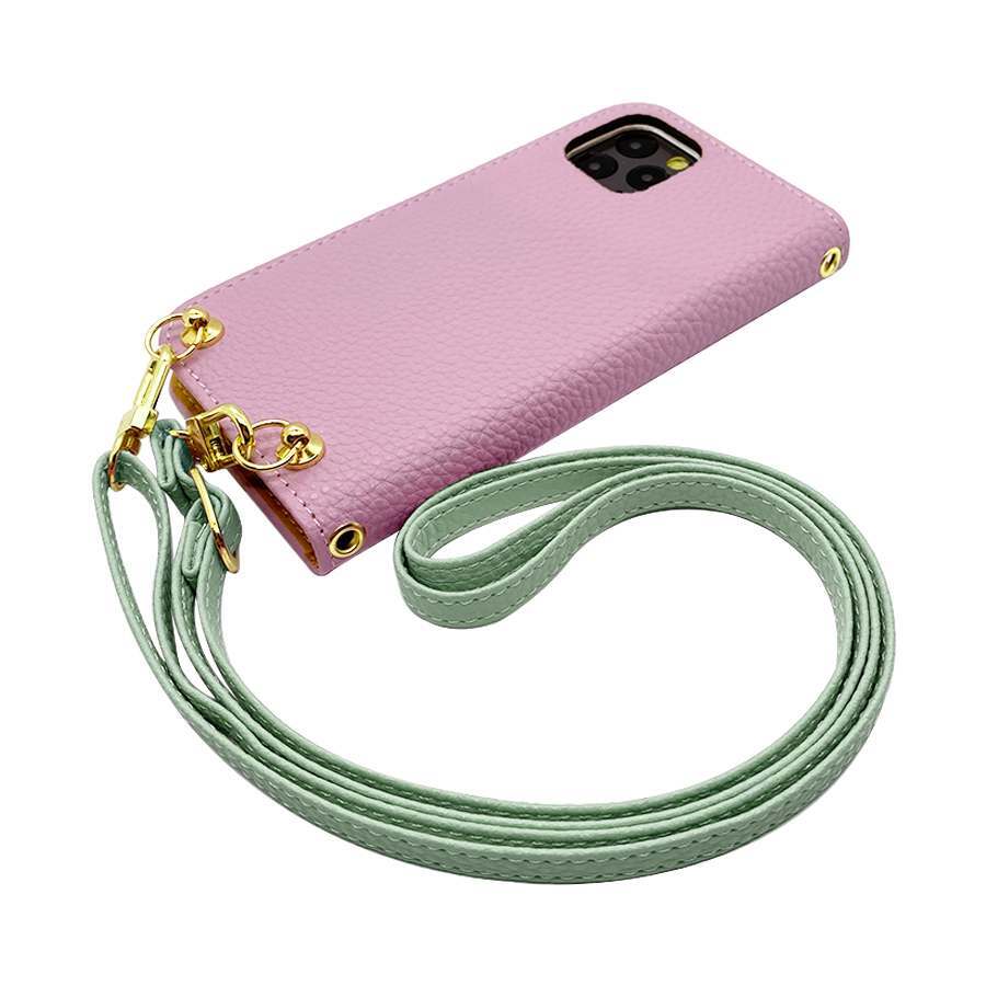 Galaxy S23 SC-51D SCG19 スマホショルダー(手帳バイオレット×ストラップ:アイスグリーン)カバー 手帳 くすみカラー